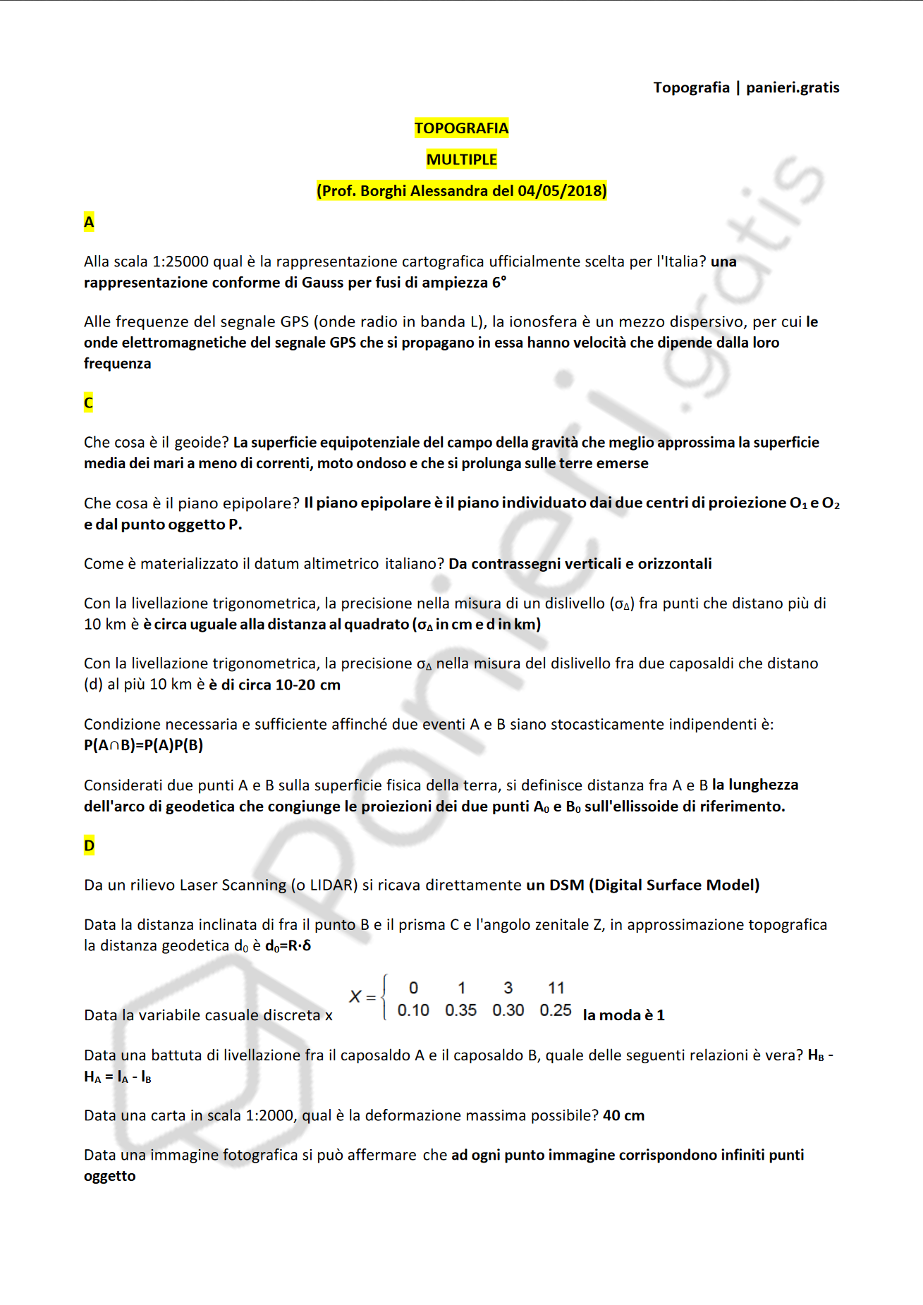 Paniere svolto Geomatica - MULTIPLE - in ordine di lezione per il CdS in Ingegneria civile e ambientale, del Prof. Borghi Alessandra del 04/05/2018Informazioni Aggiuntive