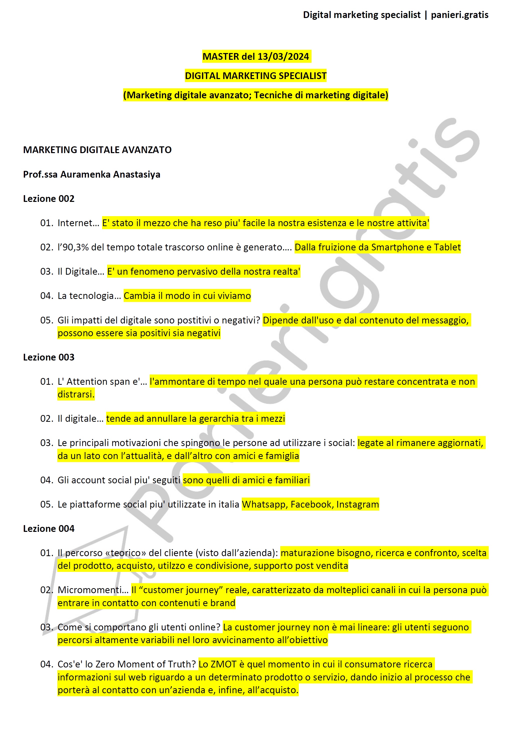Paniere di Digital marketing - in ordine di lezione per il Master Digital Marketing Specialist del 13/03/2024, contenente le matiere Marketing digitale avanzato e Tecniche di marketing digitaleInformazioni Aggiuntive