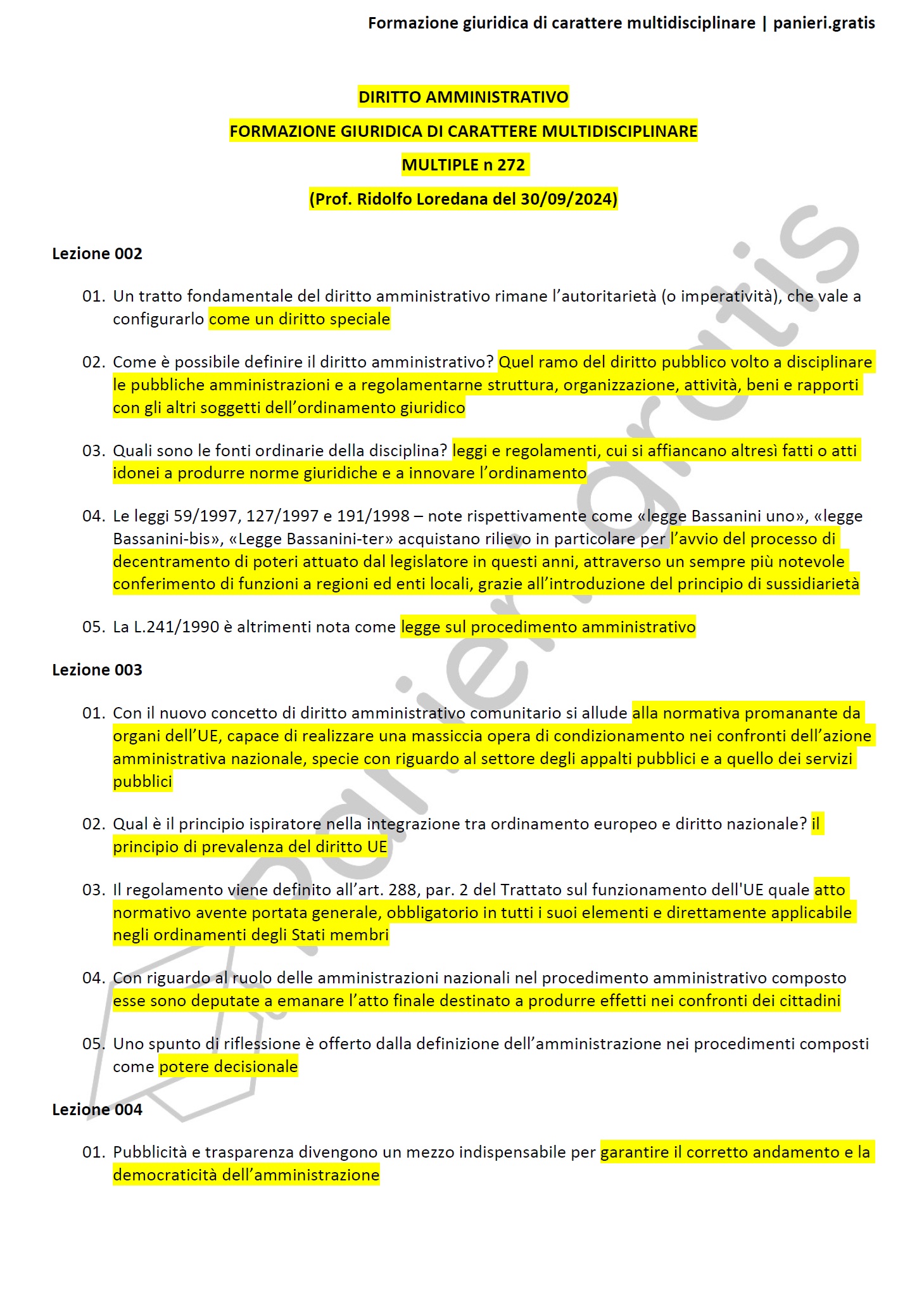 Paniere di Diritto amministrativo - Multiple - in ordine di lezione per il corso di Formazione giuridica di carattere multidisciplinare, Prof. Ridolfo Loredana del 30/09/2024 - eCampusInformazioni Aggiuntive