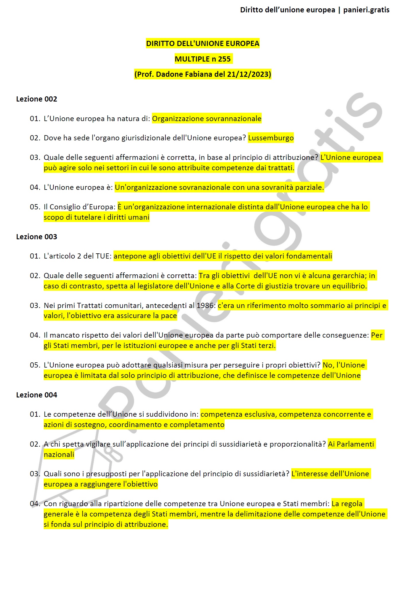 Paniere di Diritto dell'unione europea - Multiple - in ordine di lezione per il CdS in Giurisprudenza, Prof. Dadone Fabiana del 21/12/2023 eCampusInformazioni Aggiuntive