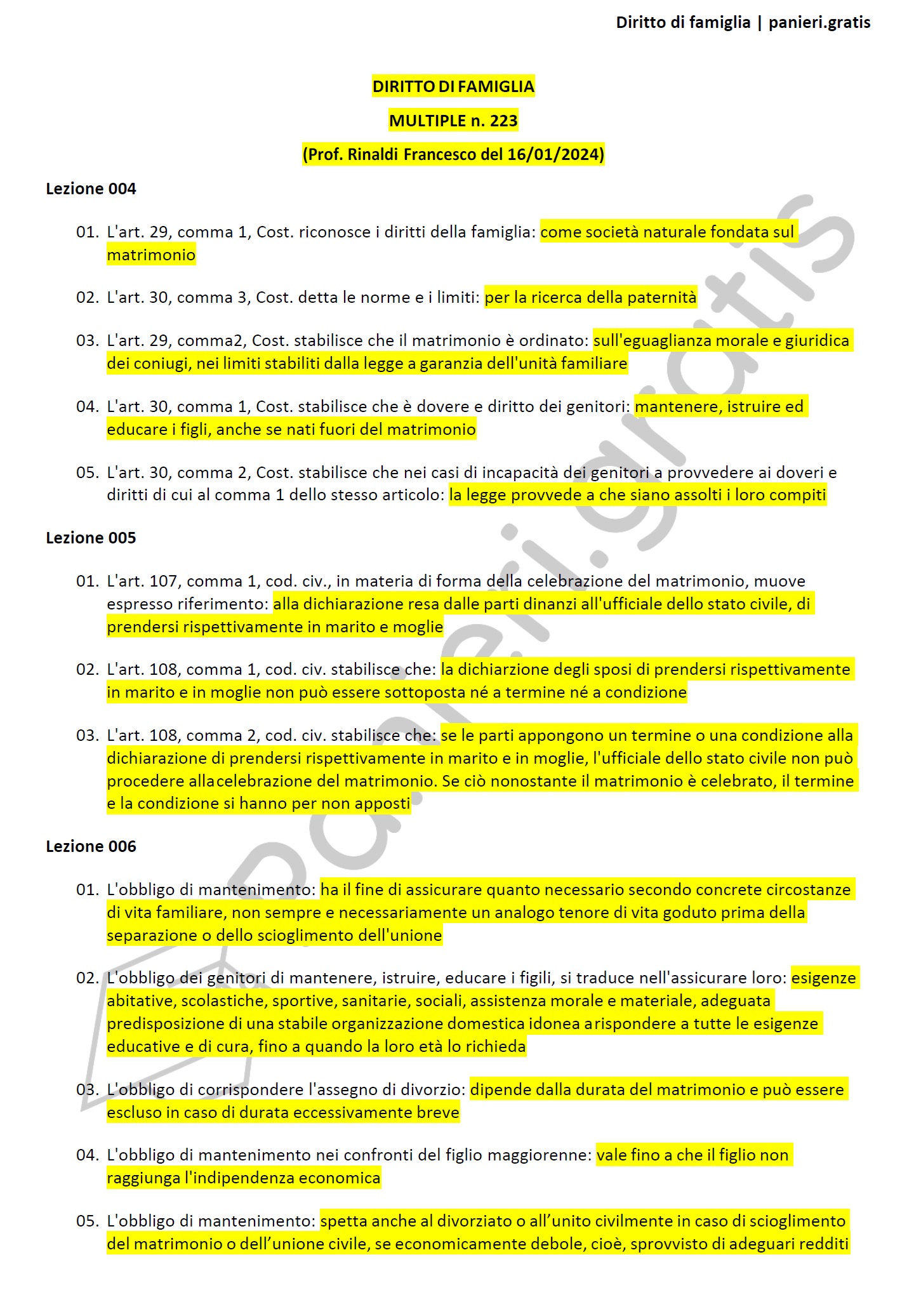 Paniere di Diritto di famiglia - Multiple - in ordine di lezione per il CdL in Servizi giuridici, Prof. Rinaldi Francesco del 16/01/2024Informazioni Aggiuntive