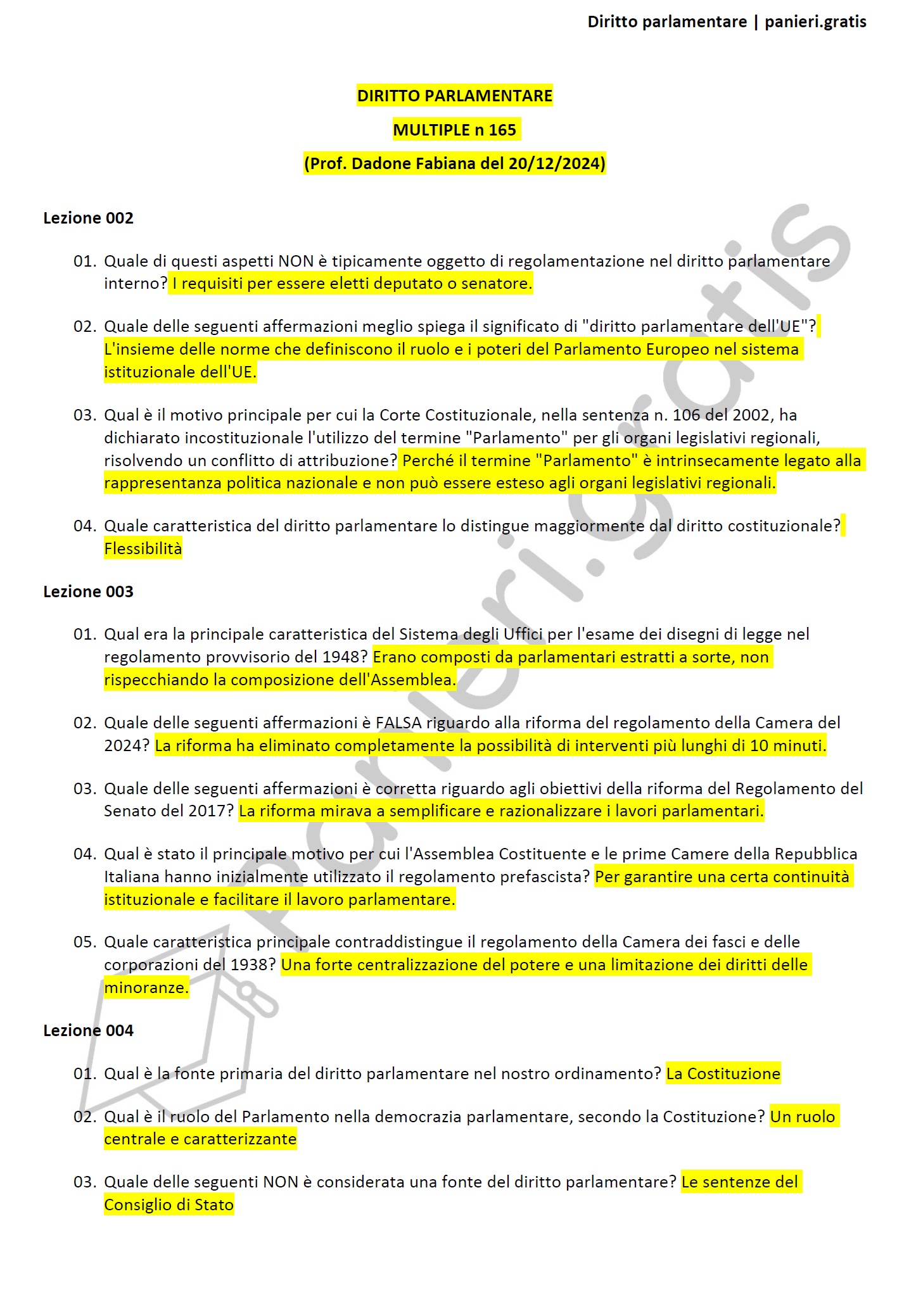 Paniere di Diritto parlamentare - Multiple 2024 - in ordine di lezione per il CdS in Scienze politiche e sociali, Prof. Dadone Fabiana del 20/12/2024 - eCampusInformazioni Aggiuntive