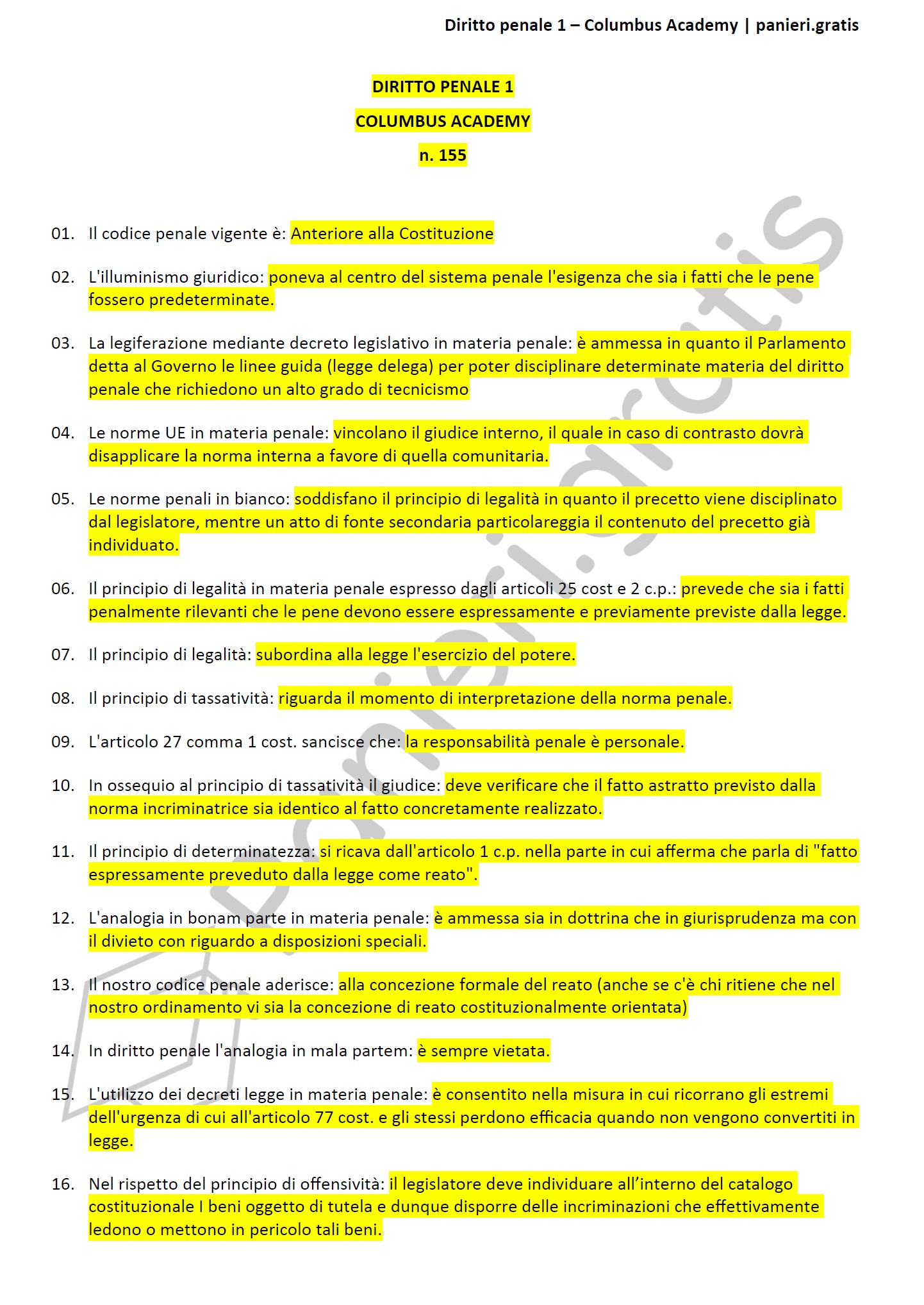 Paniere di Diritto penale 1 completo di tutte le 155 domande per le facoltà della Columbus AcademyDescrizione