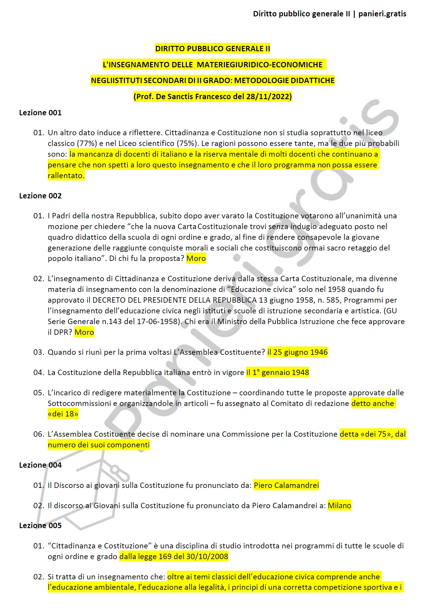 Paniere di Diritto pubblico generale II - MULTIPLE - in ordine di lezione per MASTER A46 (L'INSEGNAMENTO DELLE MATERIE GIURIDICO-ECONOMICHE NEGLI ISTITUTI SECONDARI DI II GRADO: METODOLOGIE DIDATTICHE), Prof. De Sanctis Francesco del 28/11/2022Informazioni Aggiuntive