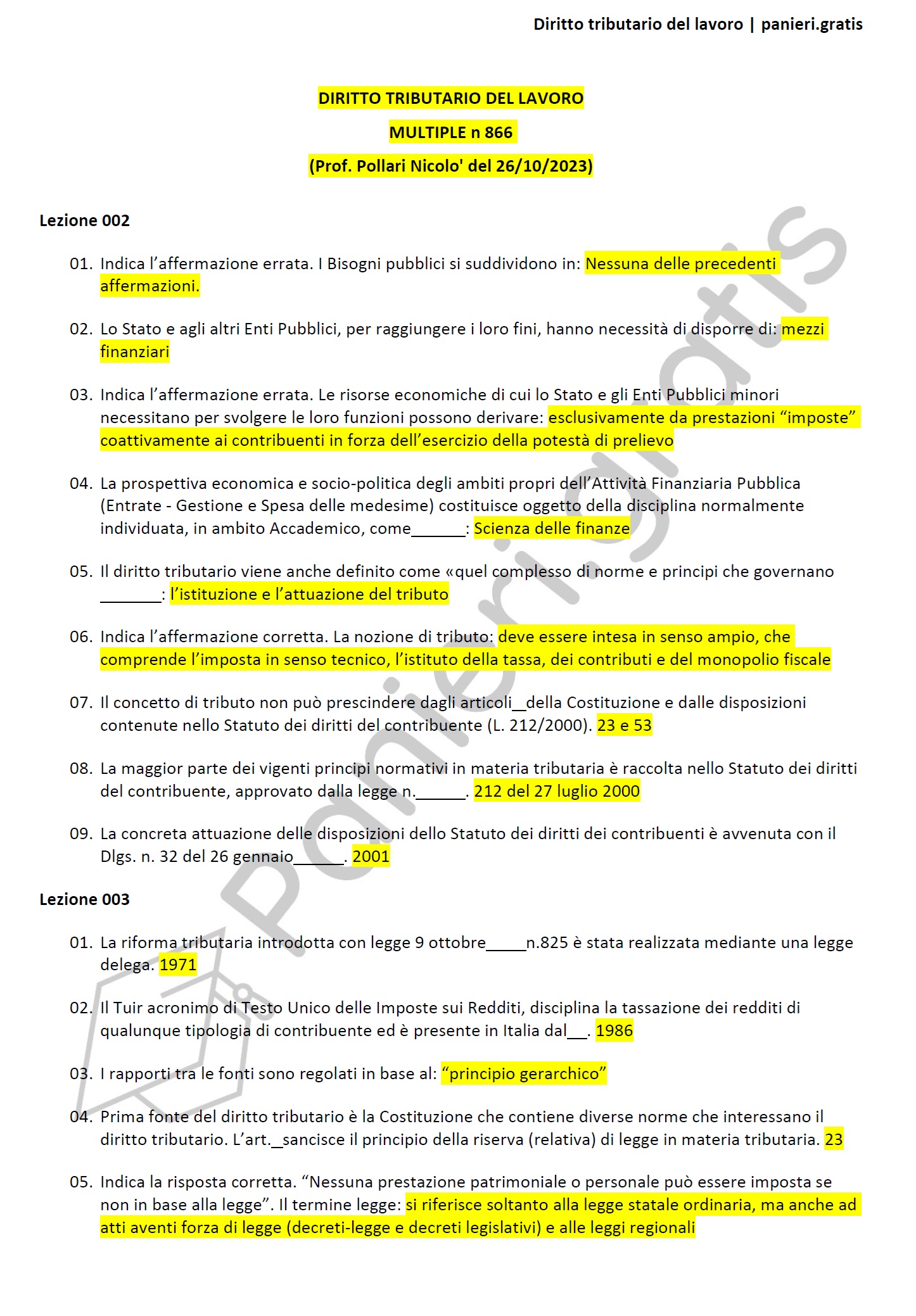 Paniere di Diritto tributario del lavoro - MULTIPLE - in ordine di lezione per il CdS in Servizi giuridici, Prof. Pollari Nicolò del 26/10/2023 - eCampusInformazioni Aggiuntive