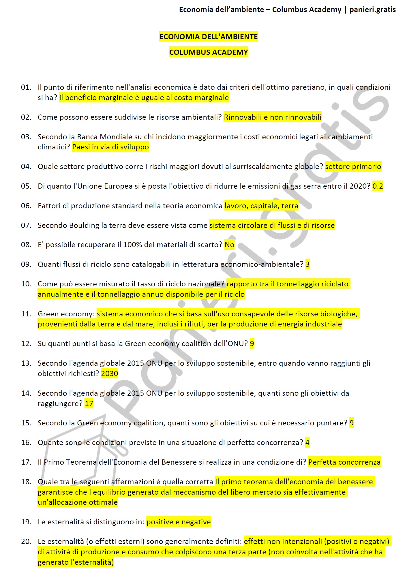 Paniere di Economia dell’ambiente completo di tutte le domande per le facoltà della Columbus AcademyInformazioni Aggiuntive