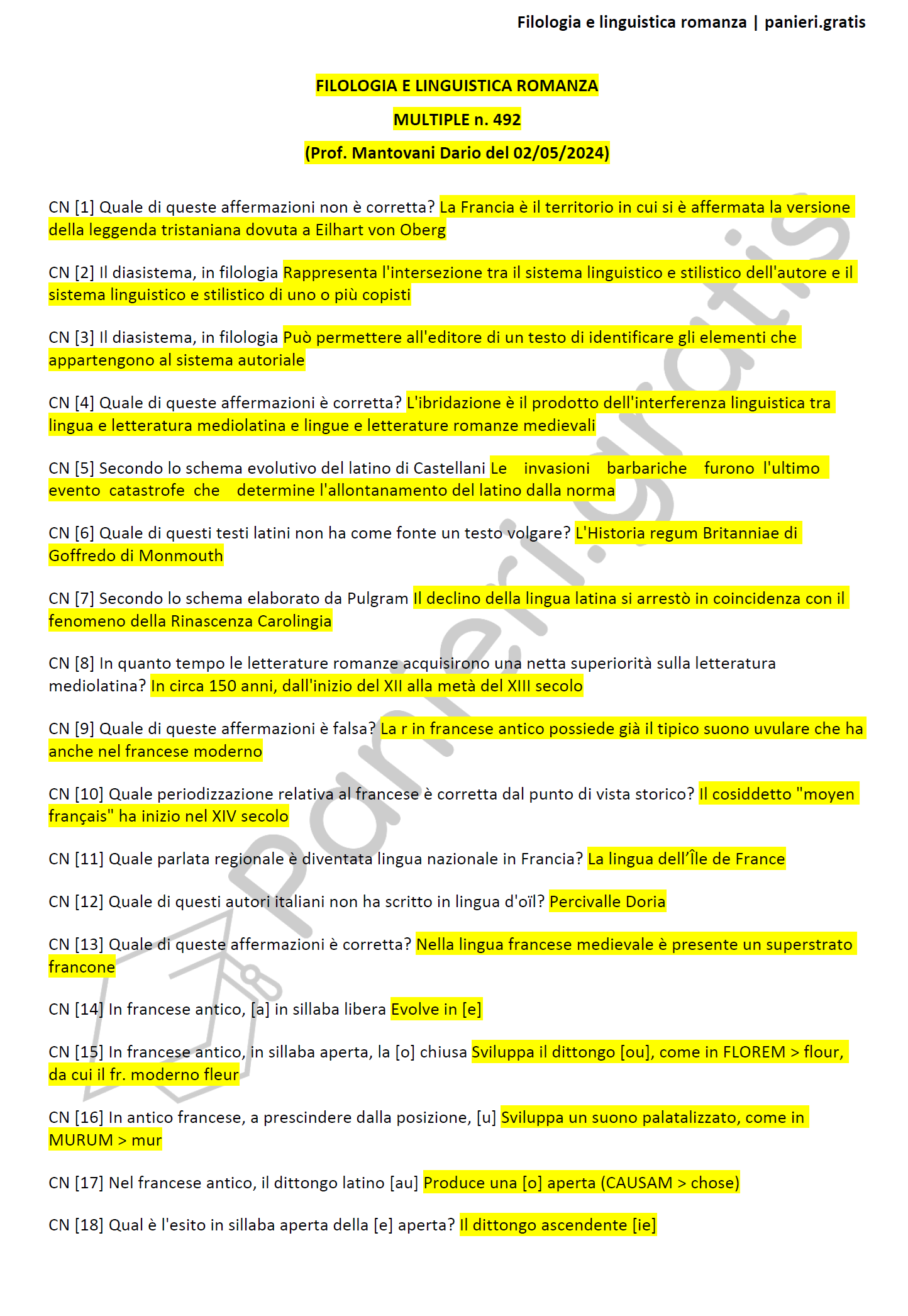 Paniere di Filologia e linguistica romanza - Multiple - in ordine di lezione per il CdS in Lingue e letterature moderne e traduzione interculturale, Prof. Mantovani Dario del 02/05/2024 - eCampusInformazioni Aggiuntive