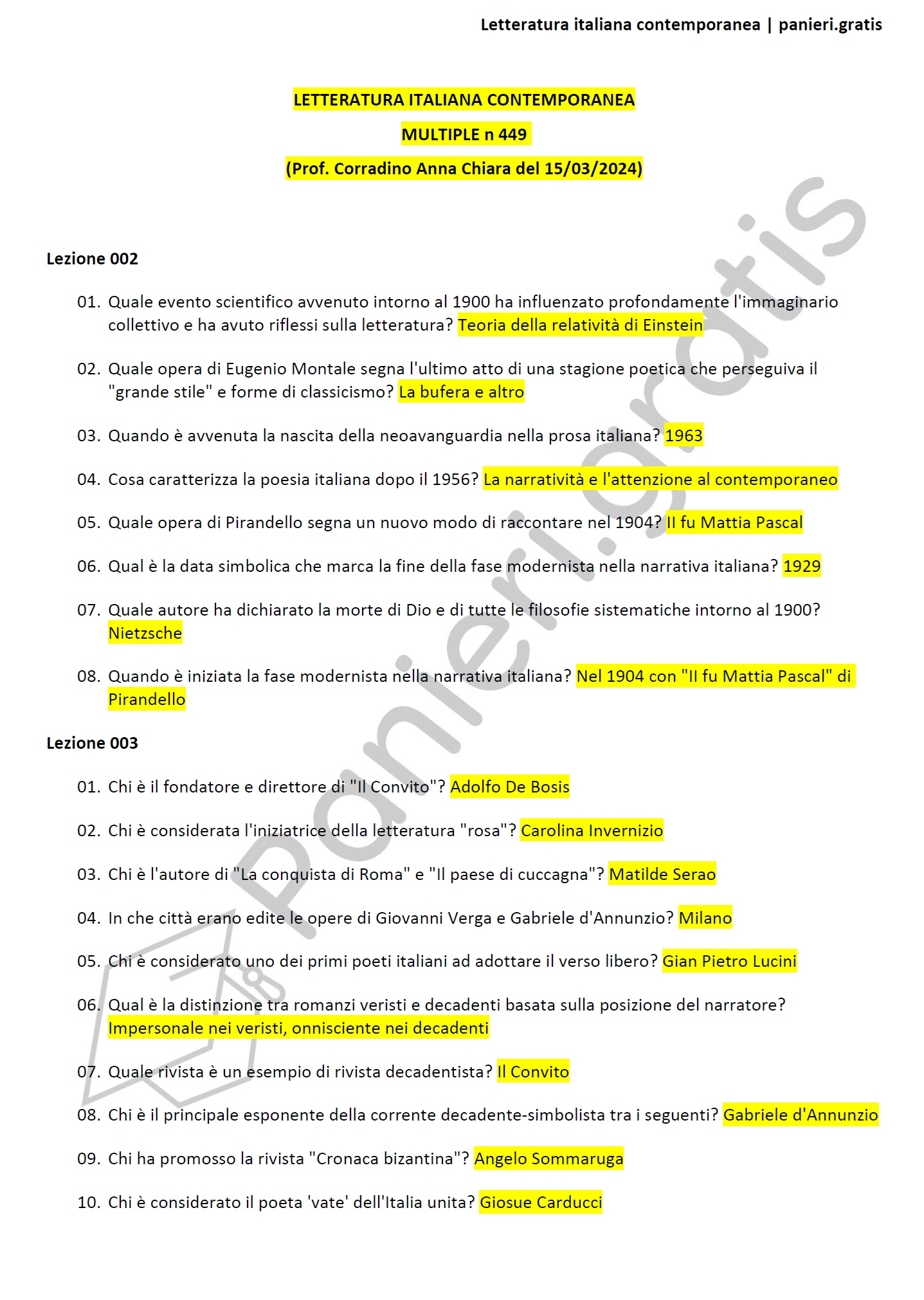 Paniere di Letteratura italiana contemporanea - MULTIPLE - in ordine di lezione per il CDS in Letteratura, arte, musica e spettacolo (Lams), Prof. Corradino Anna Chiara del 15/03/2024 - eCampusInformazioni Aggiuntive