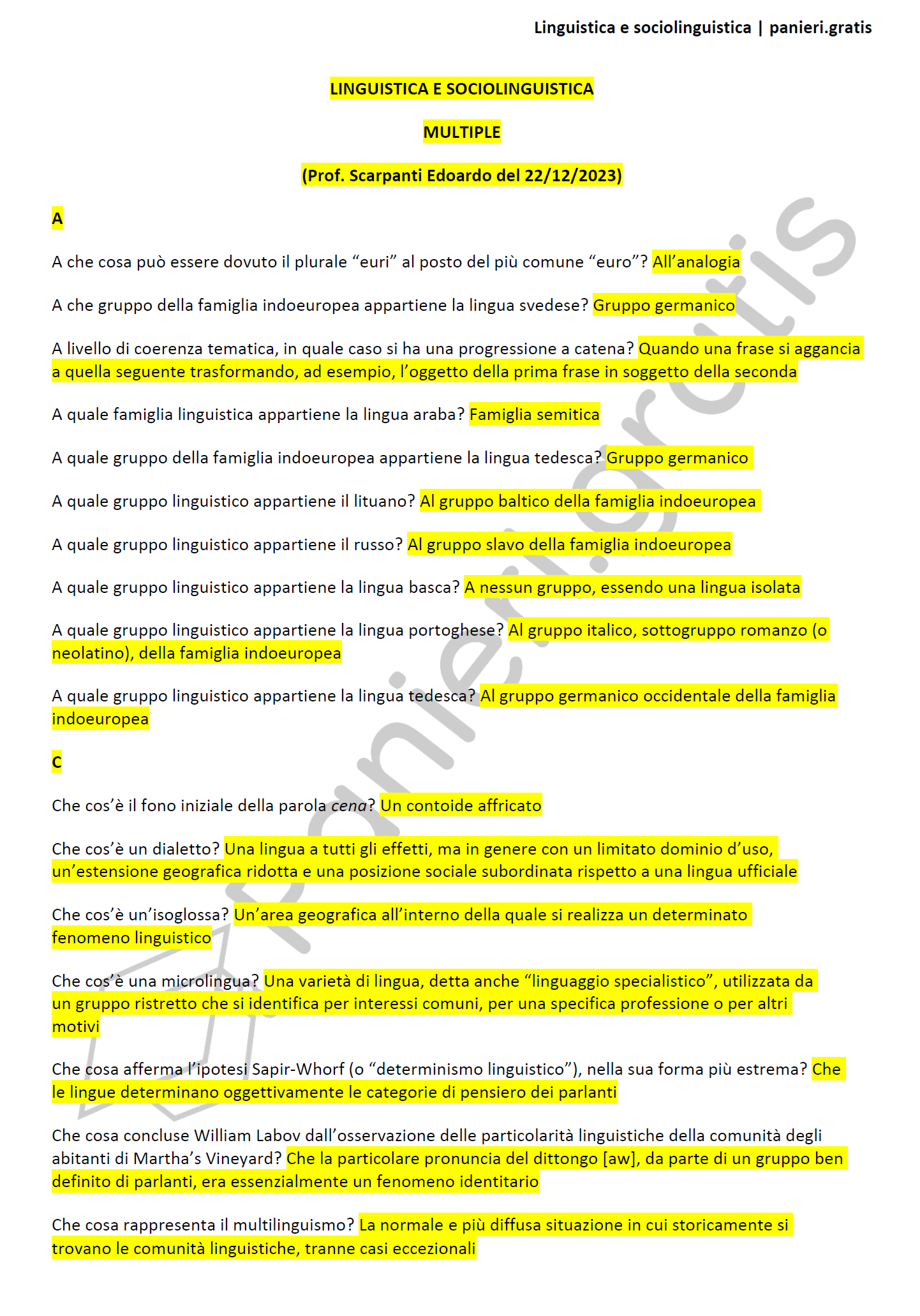 Paniere di Linguistica e sociolinguistica - MULTIPLE - in ordine di lezione per il CdS in Lingue e letterature moderne e traduzione interculturale, Prof. Scarpanti Edoardo del 22/12/2023 - eCampusInformazioni Aggiuntive