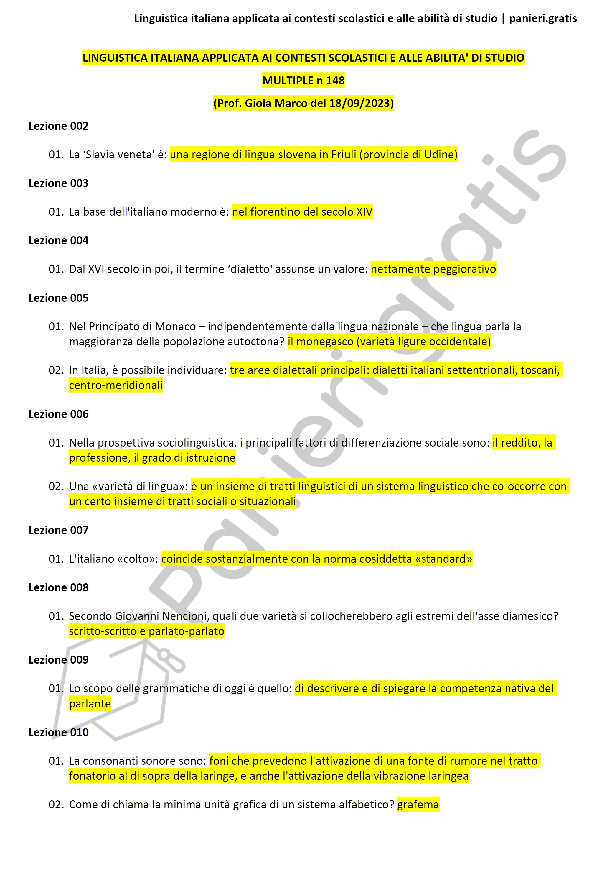 Paniere di Linguistica italiana applicata ai contesti scolastici e alle abilità di studio, in ordine di lezione per il Master L'insegnamento dell'italiano agli stranieri L2 eCampus, Prof. Giola Marco del 18/09/2023Informazioni Aggiuntive