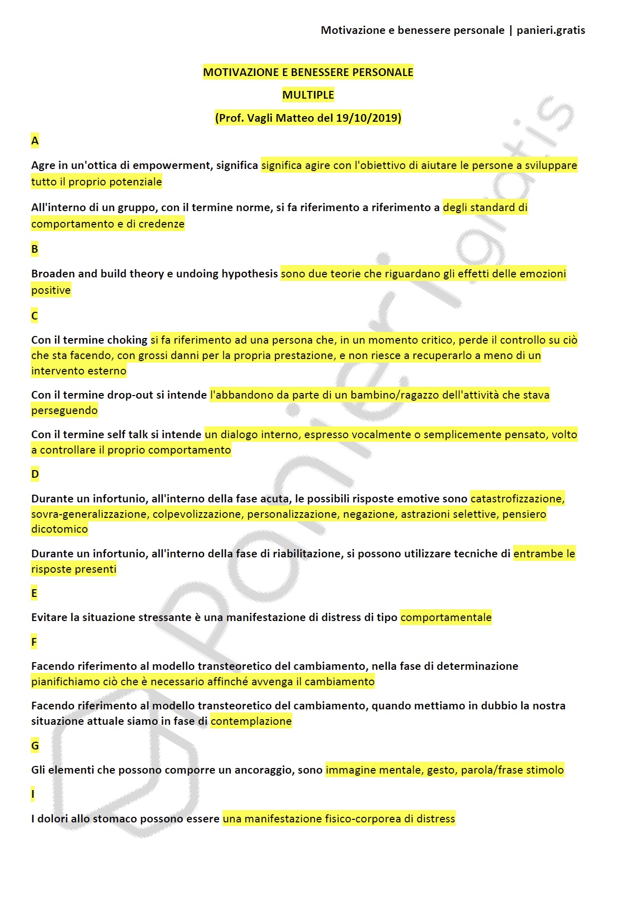 Paniere di motivazione e benessere personale - MULTIPLE - in ordine alfabetico della facoltà di SCIENZE DELL'ESERCIZIO FISICO PER IL BENESSERE E LA SALUTE, Prof. Vagli Matteo del 19/10/2019Informazioni Aggiuntive
