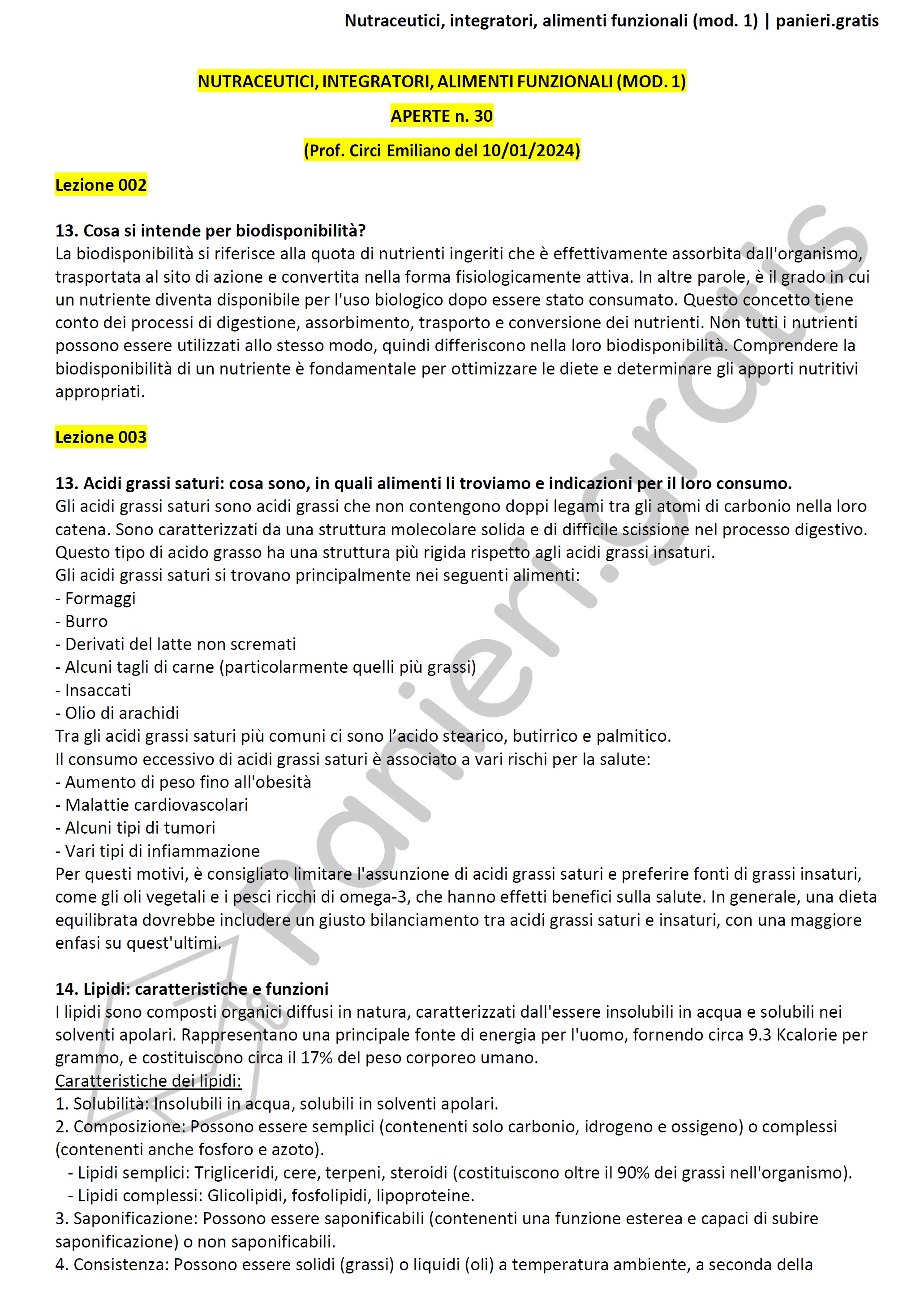 Paniere di Nutraceutici, integratori, alimenti funzionali (mod. 1) - APERTE - in ordine di lezione per il CdS in Scienze della nutrizione umana eCampus, Prof. Circi Emiliano del 10/01/2024Informazioni Aggiuntive
