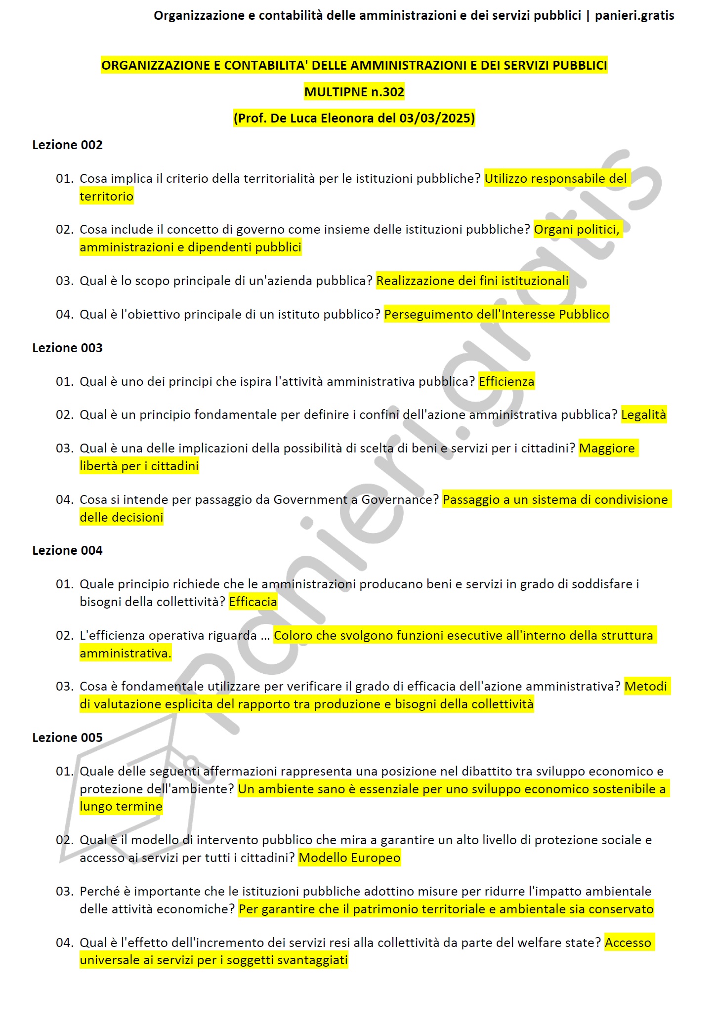 Paniere di Organizzazione e contabilità delle amministrazioni e dei servizi pubblici - MULTIPLE - in ordine di lezione per il CdS in SCIENZE POLITICHE E SOCIALI, Prof.ssa De Luca Eleonora del 03/03/2025Descrizione