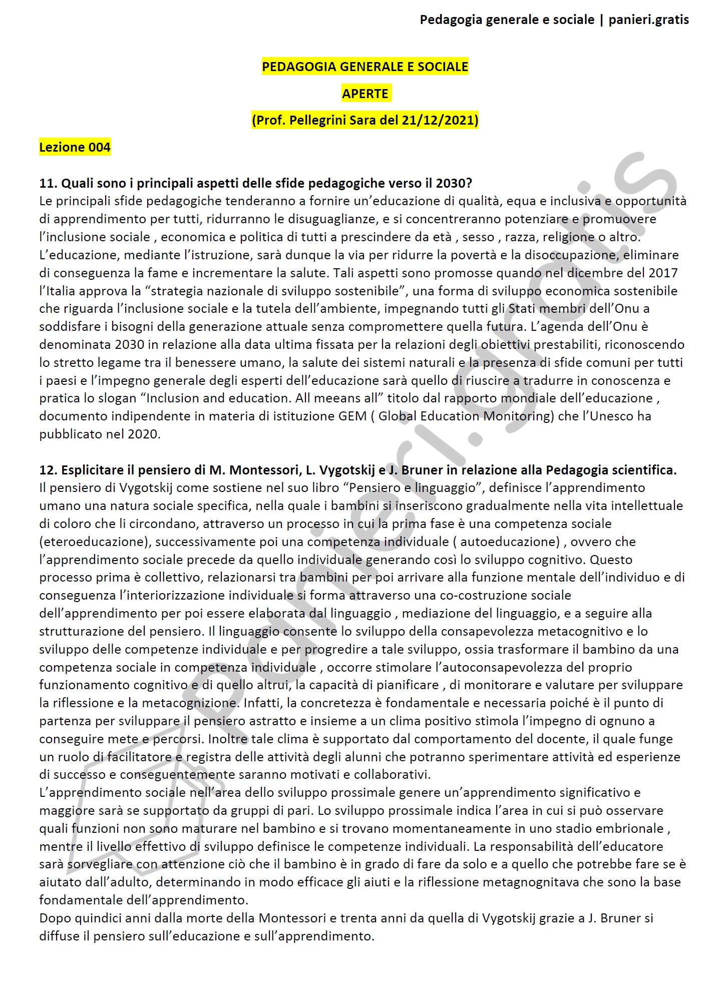 Paniere di Pedagogia generale e sociale - APERTE - in ordine di lezione per il CdS in SCIENZE E TECNICHE PSICOLOGICHE, Prof. Pellegrini Sara del 21/12/2021Informazioni Aggiuntive