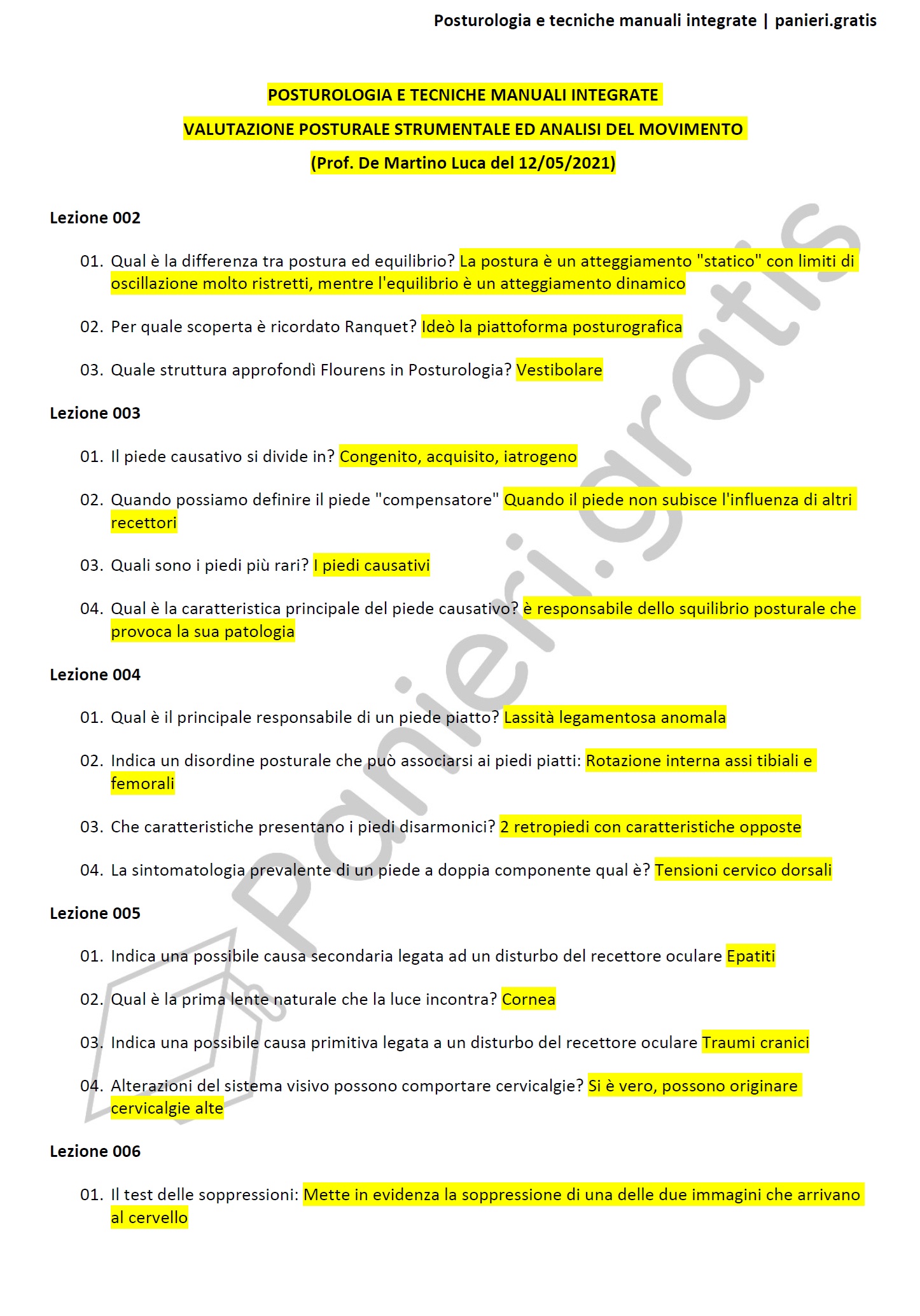 Paniere di Posturologia e tecniche manuali integrate - Multiple - in ordine di lezione per il Master VALUTAZIONE POSTURALE STRUMENTALE ED ANALISI DEL MOVIMENTO, Prof. De Martino Luca del 12/05/2021 - eCampusInformazioni Aggiuntive