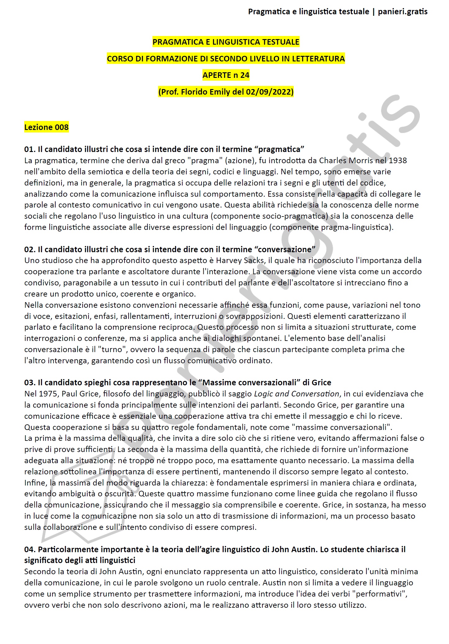 Paniere di Pragmatica e linguistica testuale - APERTE - in ordine di lezione per Corso di formazione di secondo livello in Letteratura, Prof. Florido Emily del 02/09/2022 - eCampusInformazioni Aggiuntive