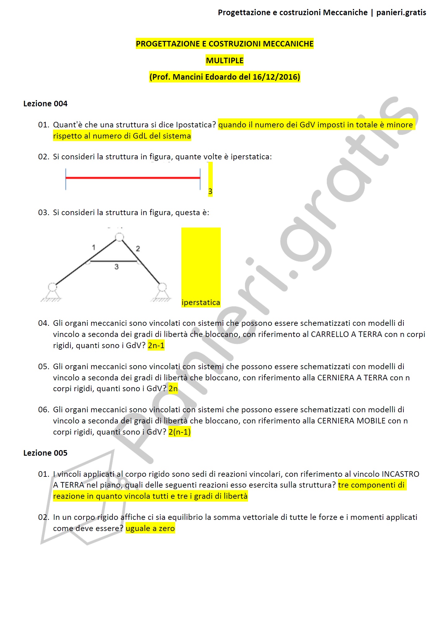 Paniere di Progettazione e costruzioni meccaniche - MULTIPLE - in ordine di lezione per il CdS in Ingegneria industriale, Prof. Mancini Edoardo del 16/12/2016Informazioni Aggiuntive