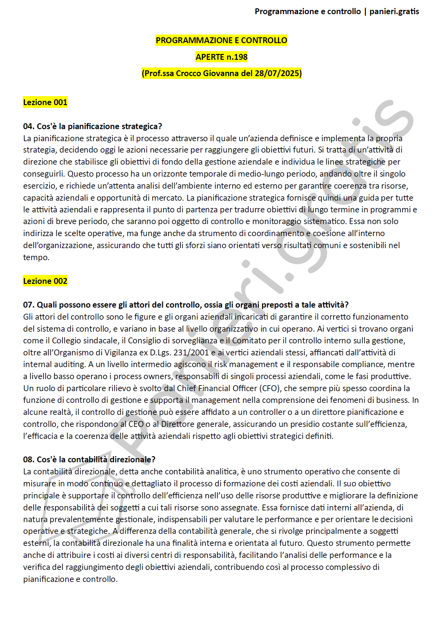 Paniere di Programmazione e controllo - APERTE - in ordine di lezione per il CdS in Economia, Prof.ssa Crocco Giovanna del 28/07/2025 - eCampusInformazioni Aggiuntive