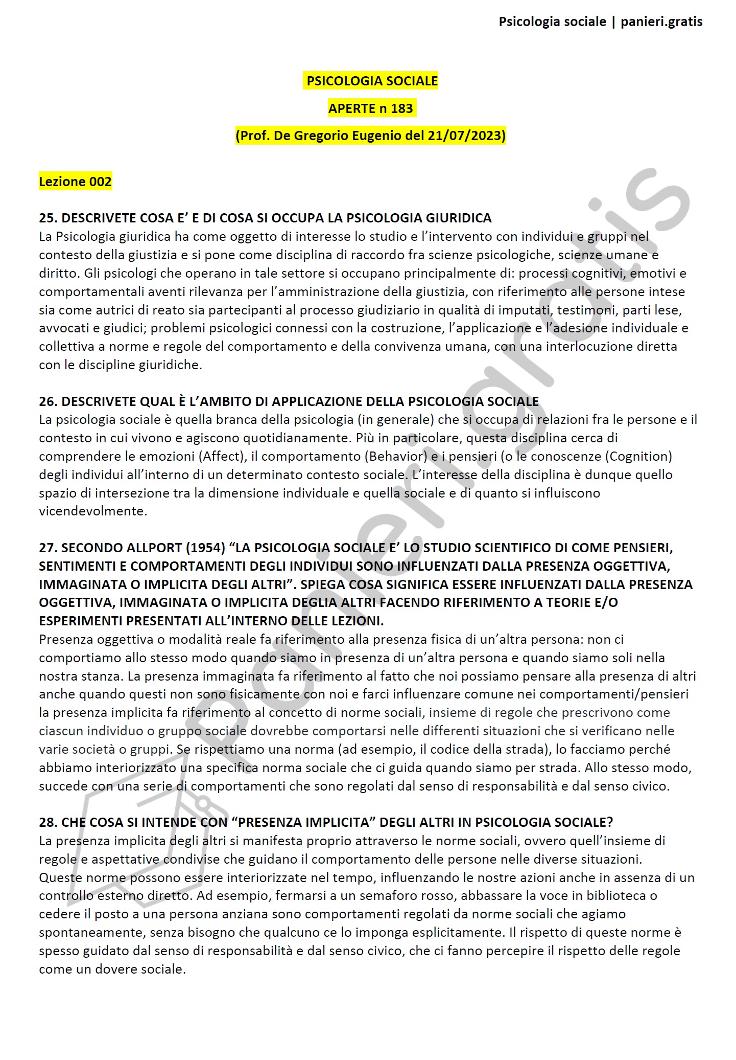 Paniere di Psicologia sociale - Aperte - in ordine di lezione per il CdS Scienze e tecniche psicologiche, Prof. De Gregorio Eugenio del 21/07/2023 - eCampusInformazioni Aggiuntive