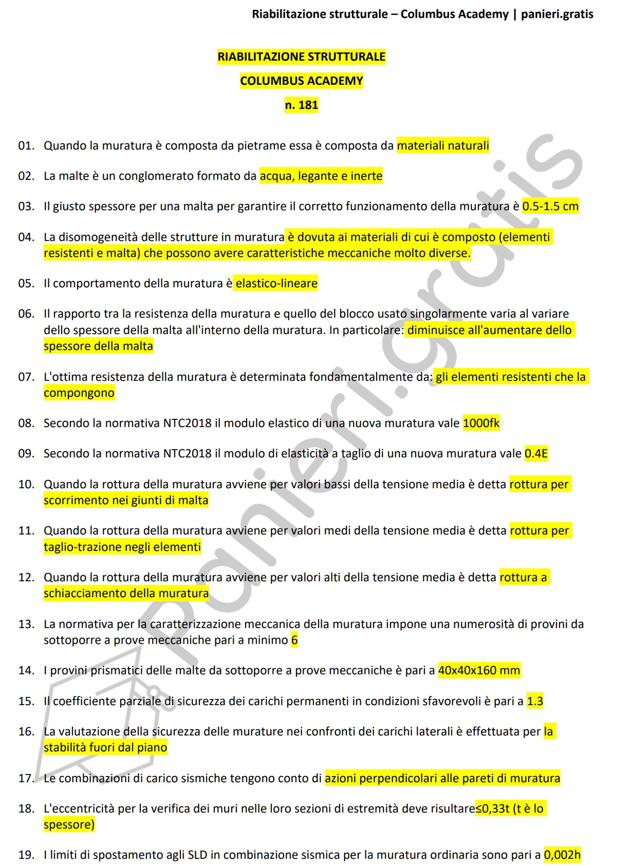 Paniere di Riabilitazione strutturale completo di tutte le 181 domande per le facoltà della Columbus AcademyInformazioni Aggiuntive