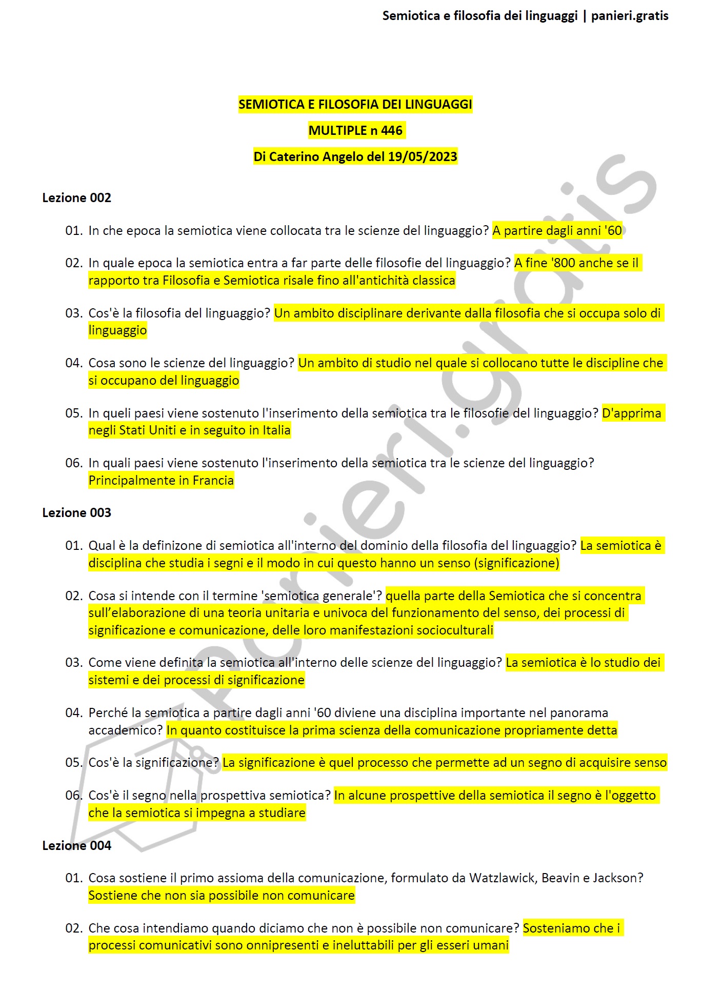 Paniere di Semiotica e filosofia dei linguaggi - MULTIPLE - in ordine di lezione per il CdS in Scienze della comunicazione, Prof. Di Caterino Angelo del 19/05/2023Informazioni Aggiuntive