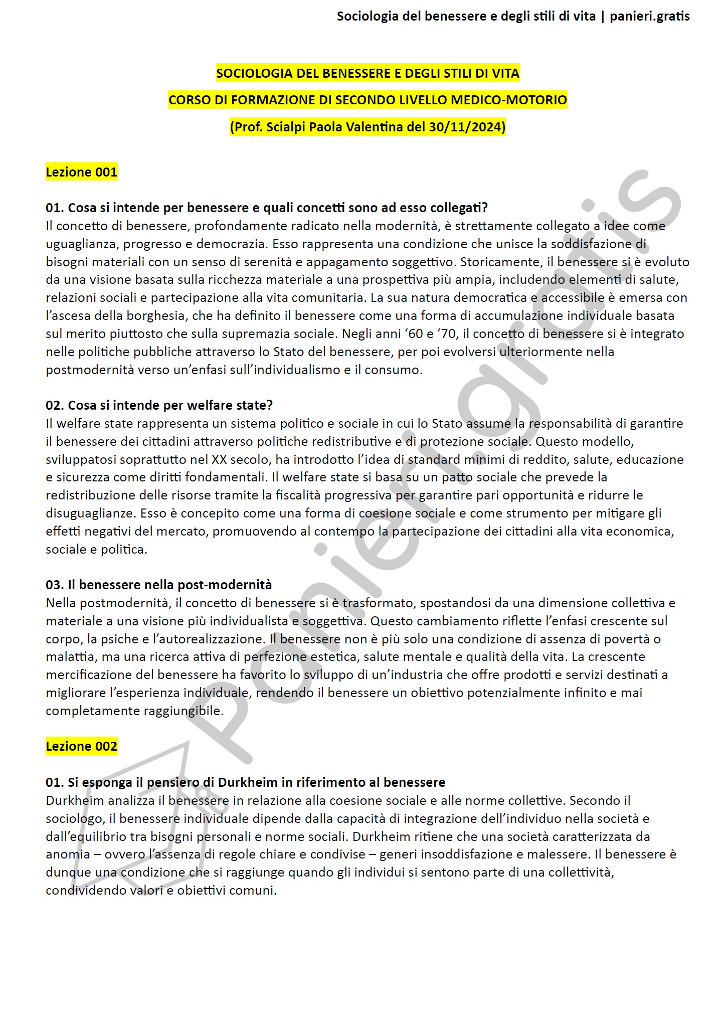Paniere di Sociologia del benessere e degli stili di vita - Aperte - in ordine di lezione per il Corso di formazione di secondo livello medico-motorio, Prof. Scialpi Paola Valentina del 30/11/2024 - eCampusInformazioni Aggiuntive