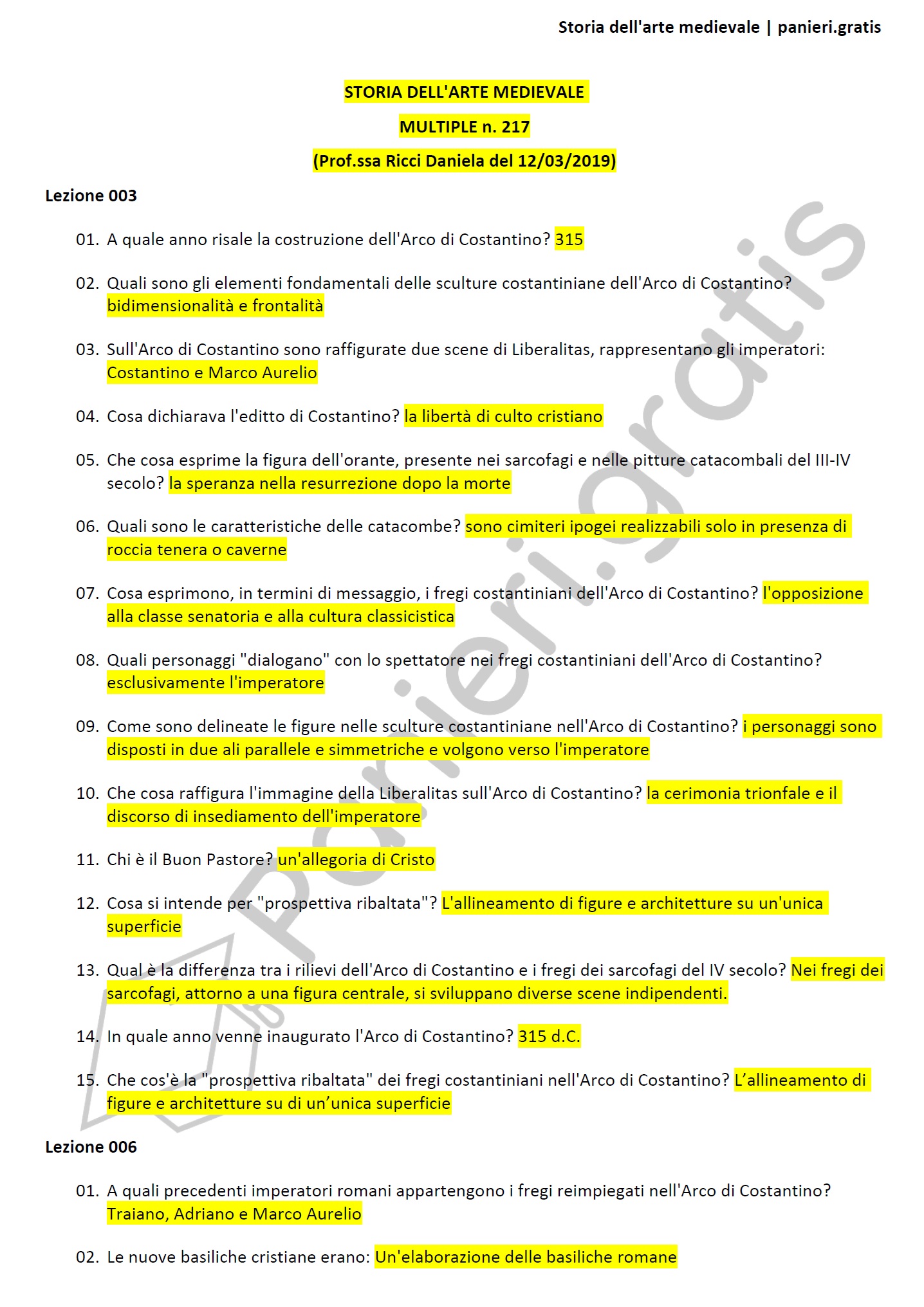Paniere di Storia dell'arte medievale - MULTIPLE - in ordine di lezione per il CdS in Letteratura, lingua e cultura italiana, Prof.ssa Ricci Daniela del 12/03/2019 - eCampusInformazioni Aggiuntive