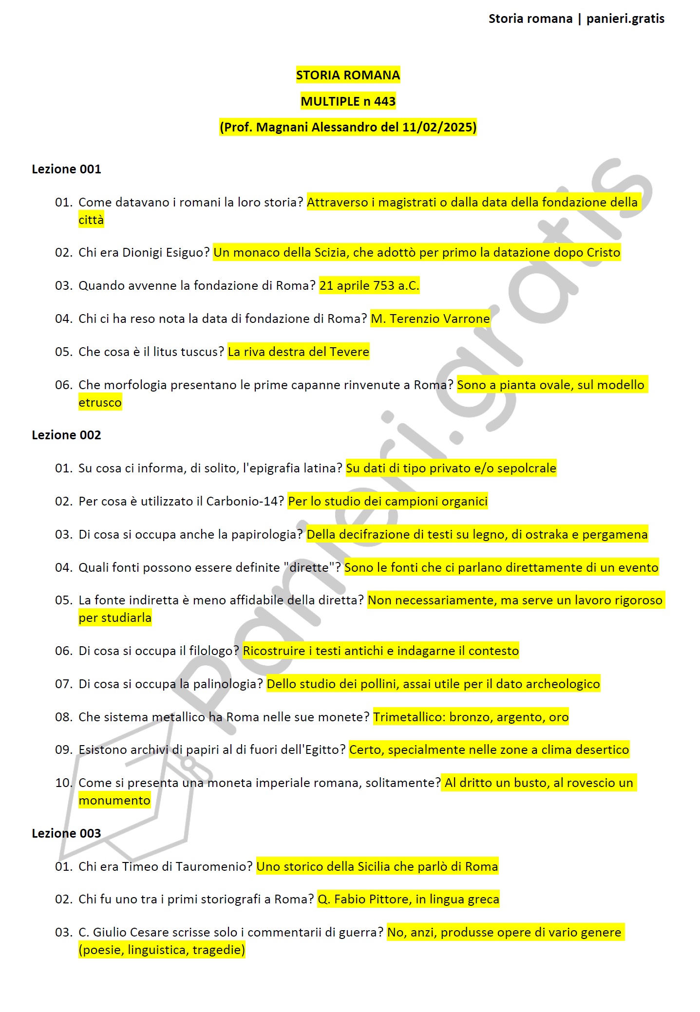 Paniere di Storia romana - Multiple - in ordine di lezione per il CdS in Letteratura, lingua e cultura italiana, Prof. Magnani Alessandro del 11/02/2025 - eCampusInformazioni Aggiuntive