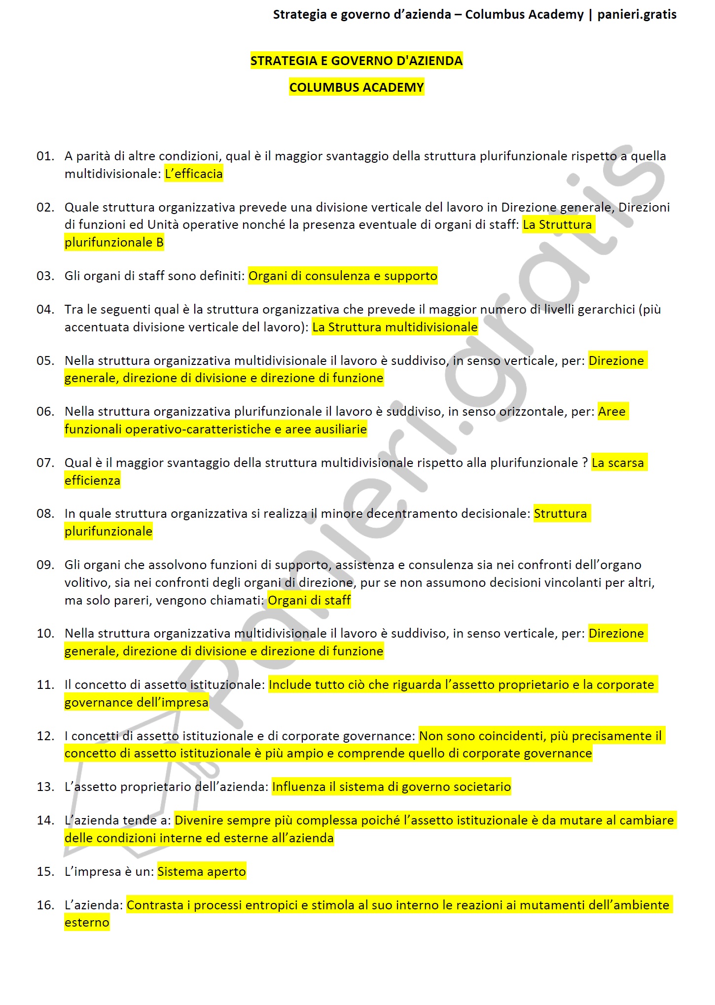 Paniere di Strategia e governo d’azienda completo di tutte le 235 domande per le facoltà della Columbus AcademyInformazioni Aggiuntive