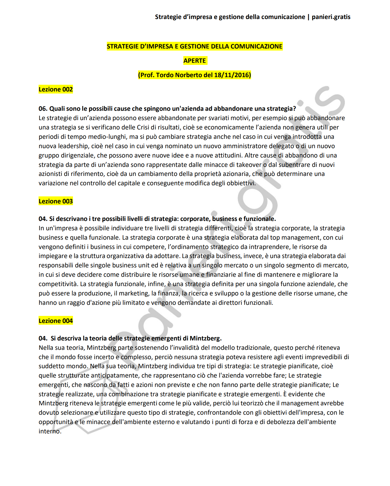 Paniere di strategie d'impresa e gestione della comunicazione - APERTE - in ordine di lezione per il Cdl in Scienze della comunicazione, prof. Tordo Norberto del 18/11/2016Informazioni Aggiuntive