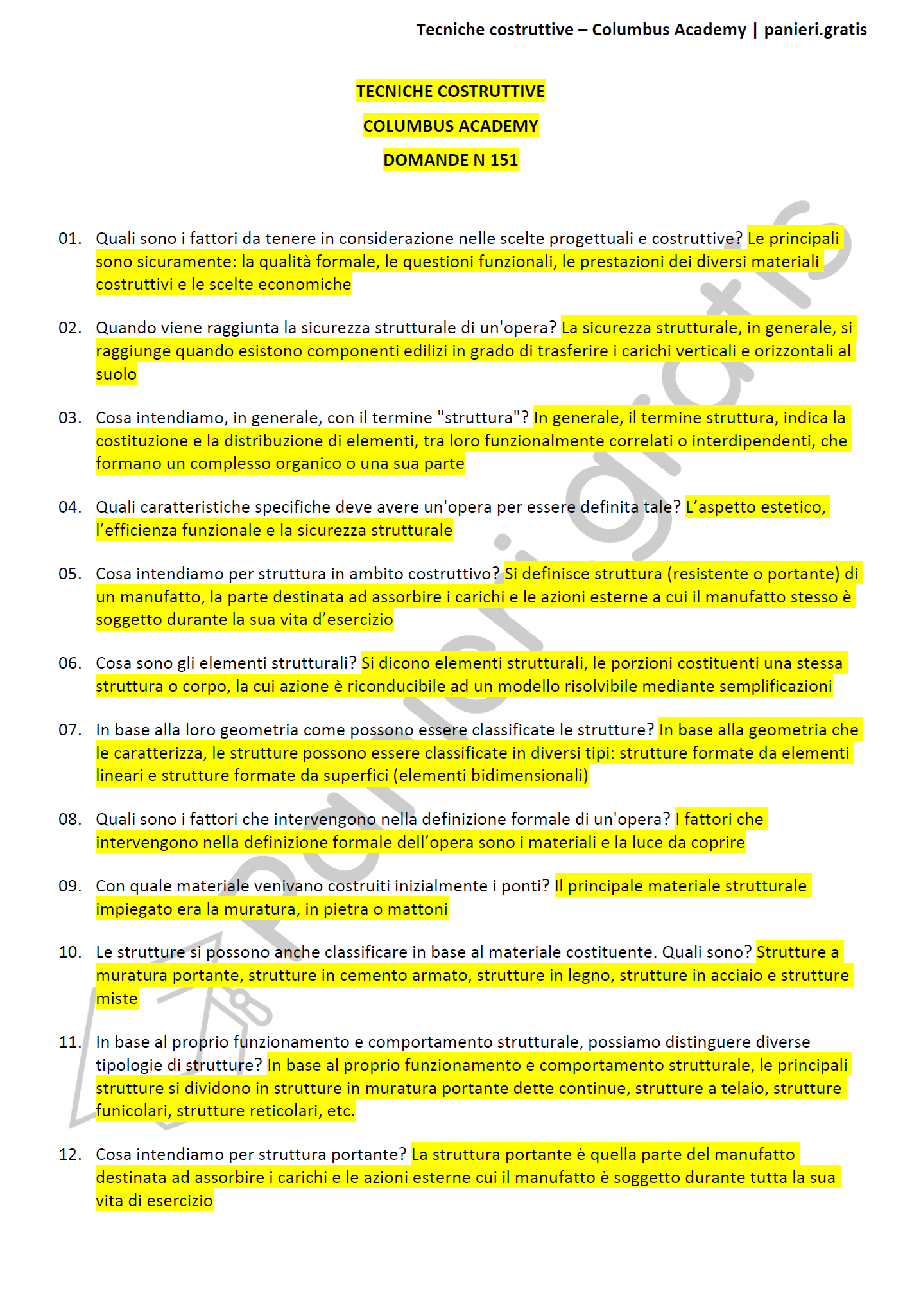 Paniere di Tecniche costruttive contenente tutte le 151 domande per i corsi singoli di Columbus academyInformazioni Aggiuntive