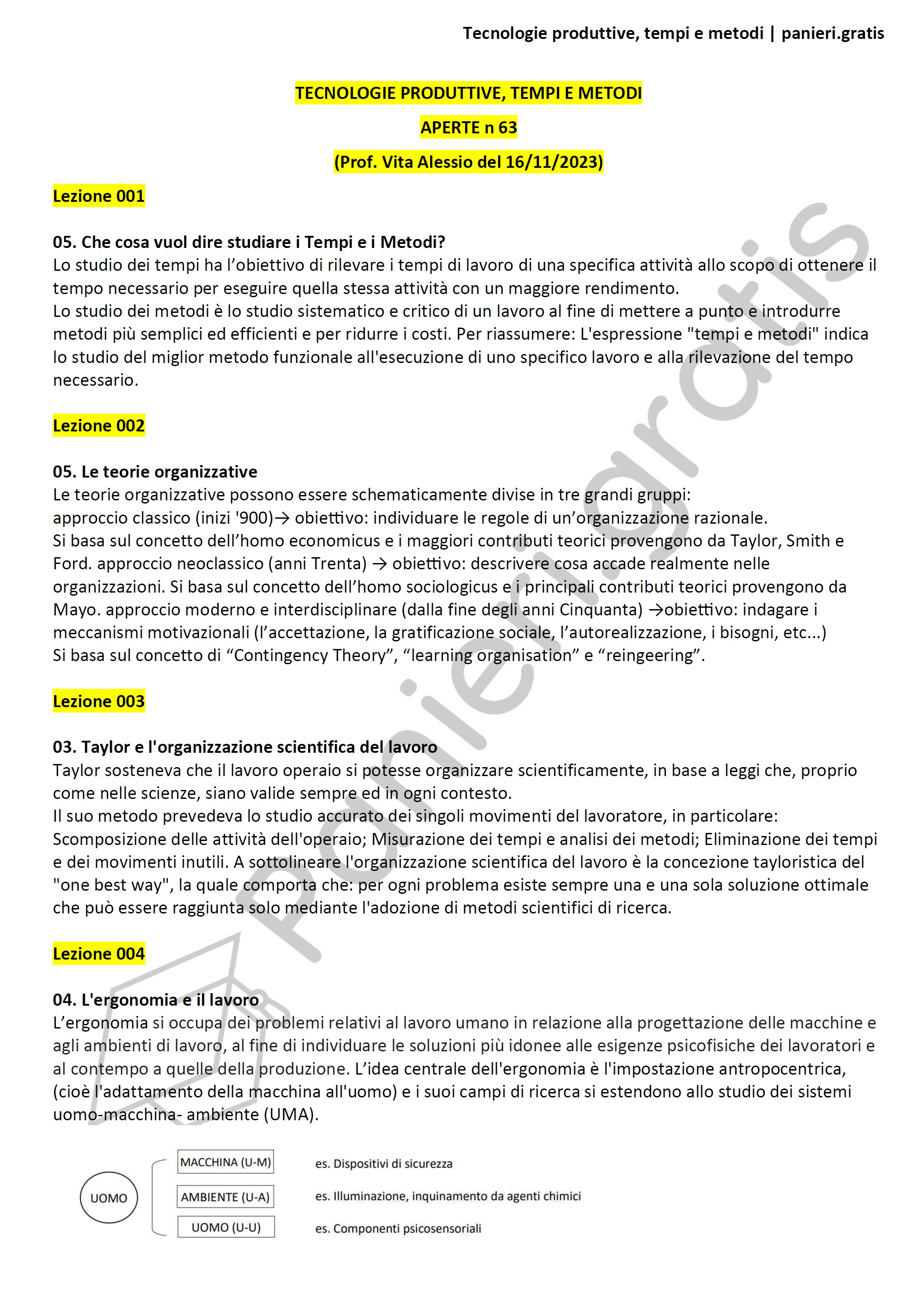 Paniere di Tecnologie produttive, tempi e metodi - APERTE - in ordine di lezione per il CdS in Ingegneria industriale, Prof. Vita Alessio del 16/11/2023Informazioni Aggiuntive