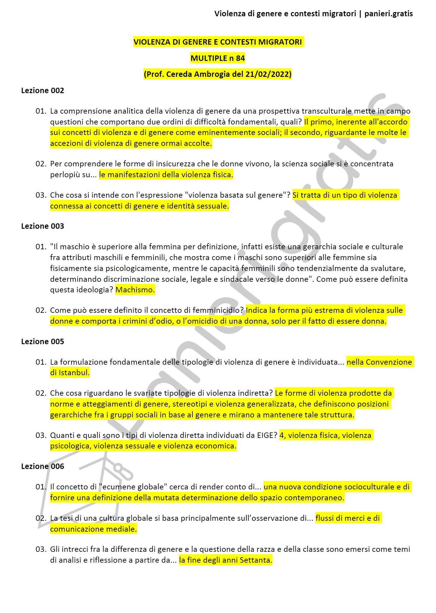 Paniere di Violenza di genere e contesti migratori - MULTIPLE - in ordine di lezione per il CdS in Psicologia, Prof. Cereda Ambrogia del 21/02/2022, eCampusInformazioni Aggiuntive