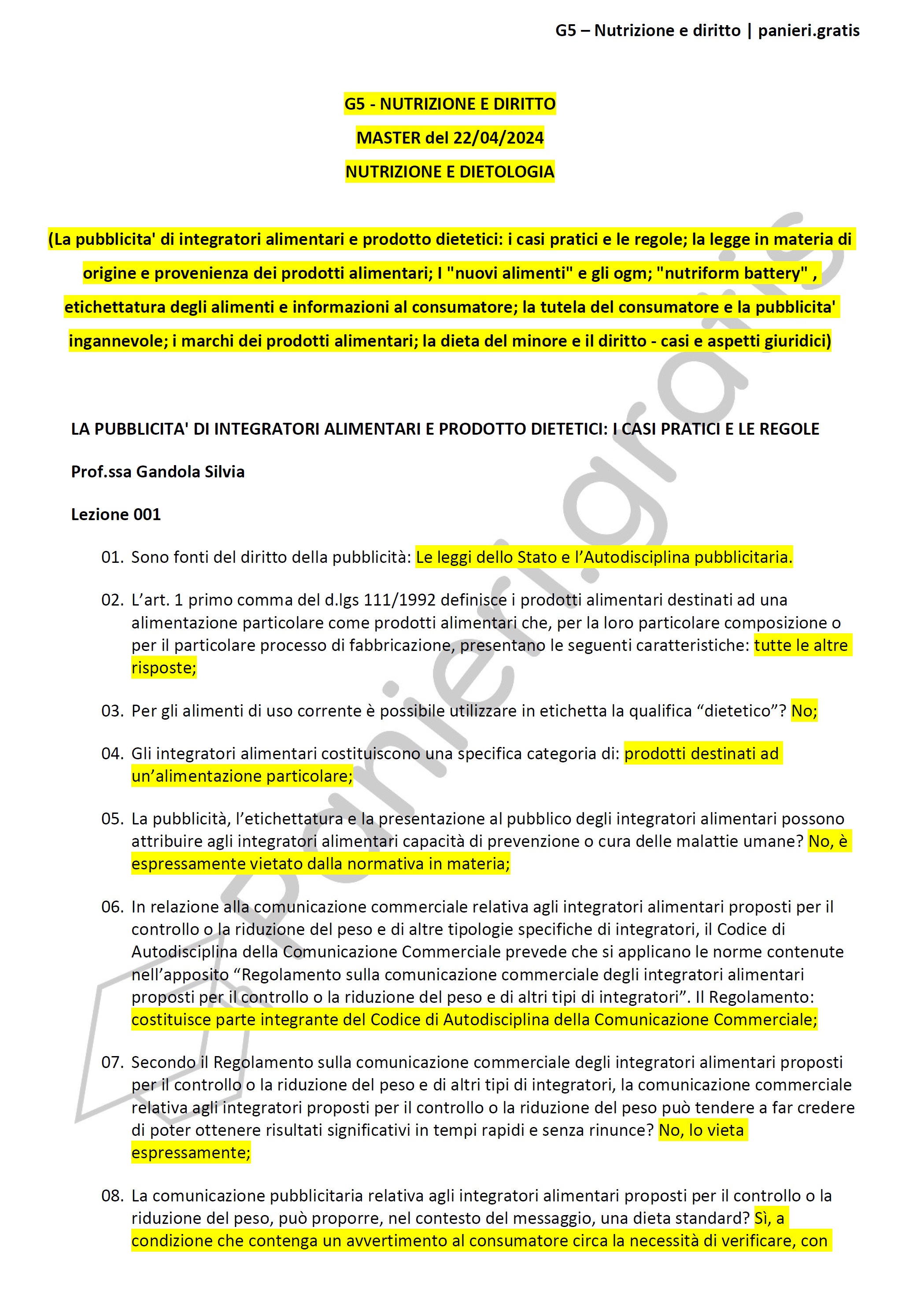 Paniere G5 - Nutrizione e diritto, in ordine di lezione per il Master Nutrizione e dietologia ecampus, aggiornato al 22/04/2024Informazioni Aggiuntive