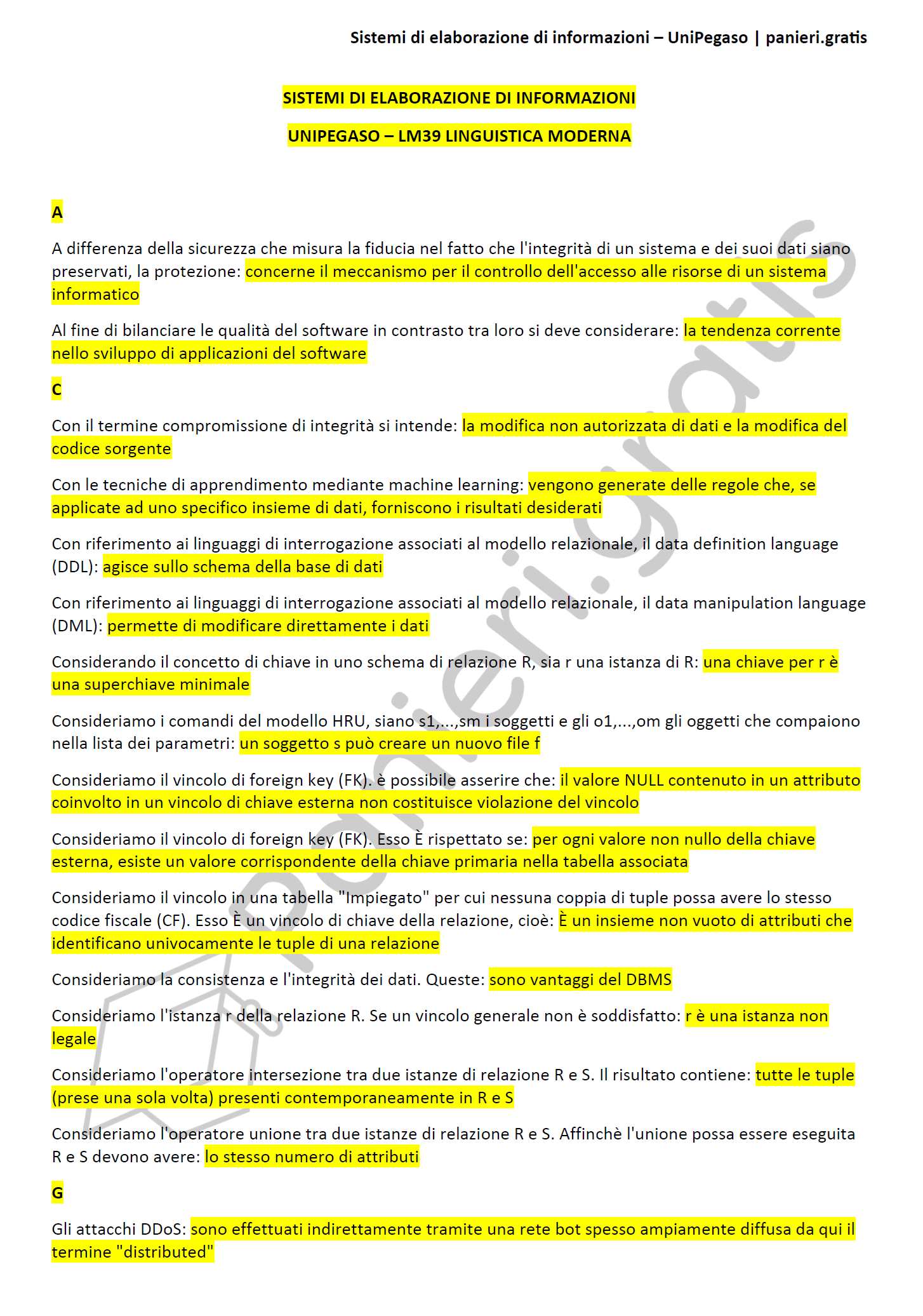 Paniere Sistemi di elaborazione di informazioni, in ordine alfabetico per il CdS LM39 Linguistica moderna - UniPegasoInformazioni Aggiuntive