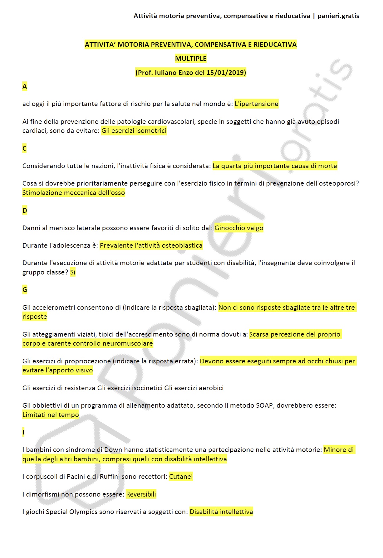 Paniere di attività motoria preventiva, compensative e rieducativa - MULTIPLE - in ordine alfabetico della facoltà di SCIENZE DELL'ESERCIZIO FISICO PER IL BENESSERE E LA SALUTE, Prof. Iuliano Enzo del 15/01/2019Descrizione