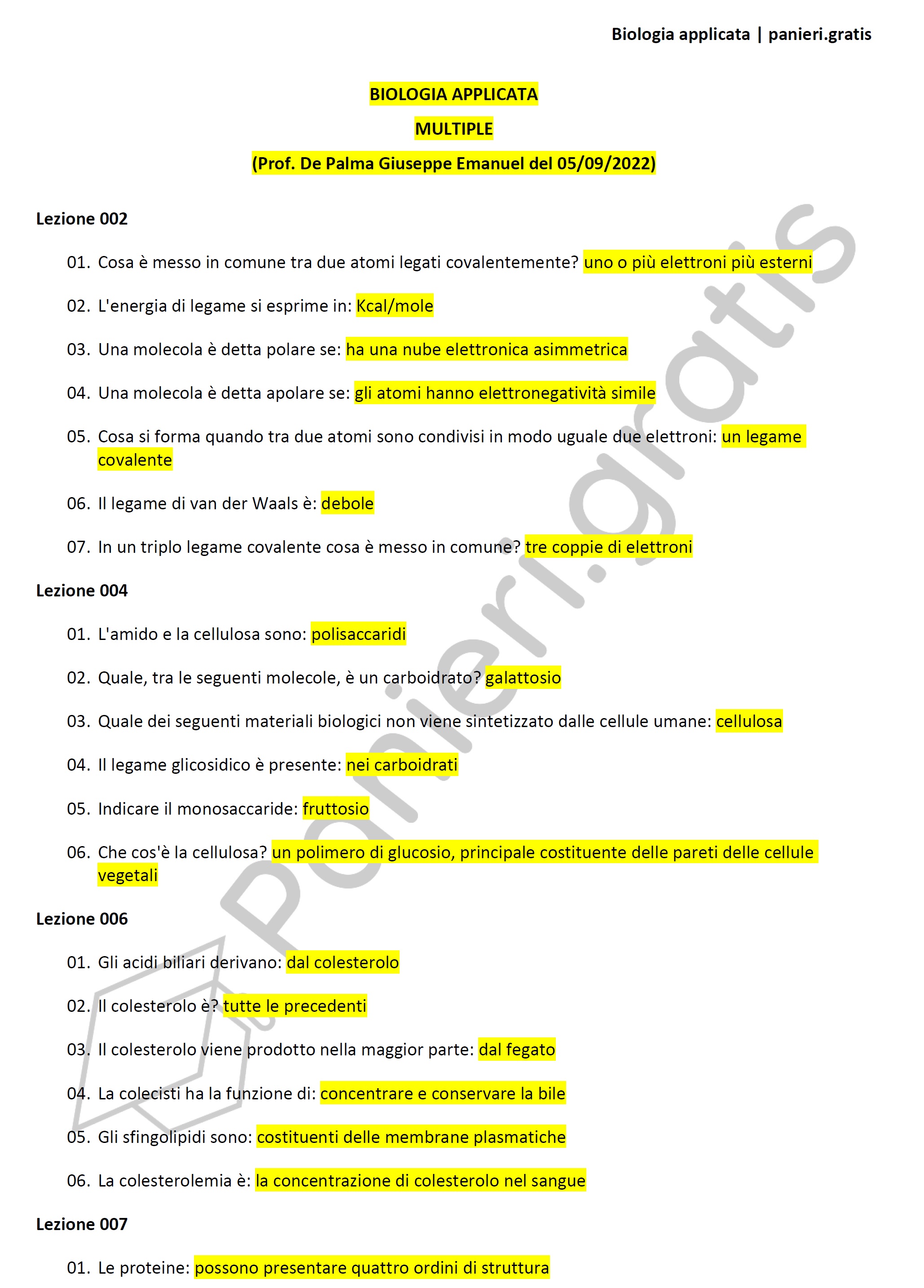 Paniere di Biologia applicata - MULTIPLE - in ordine di lezione per il CdS in Scienze e tecniche psicologiche, Prof. De Palma Giuseppe Emanuel del 05/09/2022Informazioni Aggiuntive