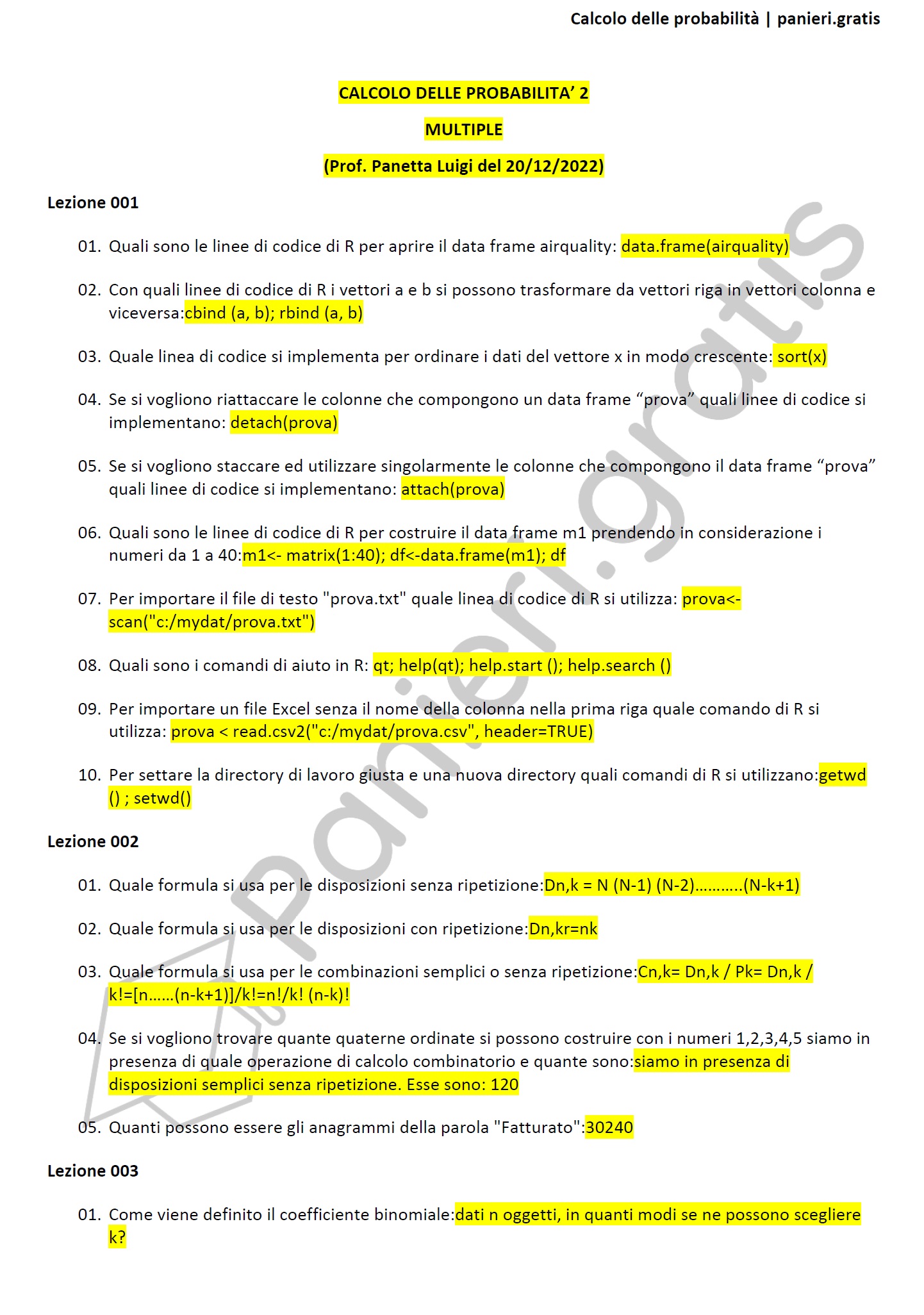 Paniere di Calcolo delle probabilità 2 - MULTIPLE - in ordine di lezione per il Master A26: L'INSEGNAMENTO DELLE MATERIE SCIENTIFICHE NEGLI ISTITUTI SECONDARI DI I E II GRADO: MATEMATICA E FISICA, Prof. Panetta Luigi del 20/12/2022Descrizione