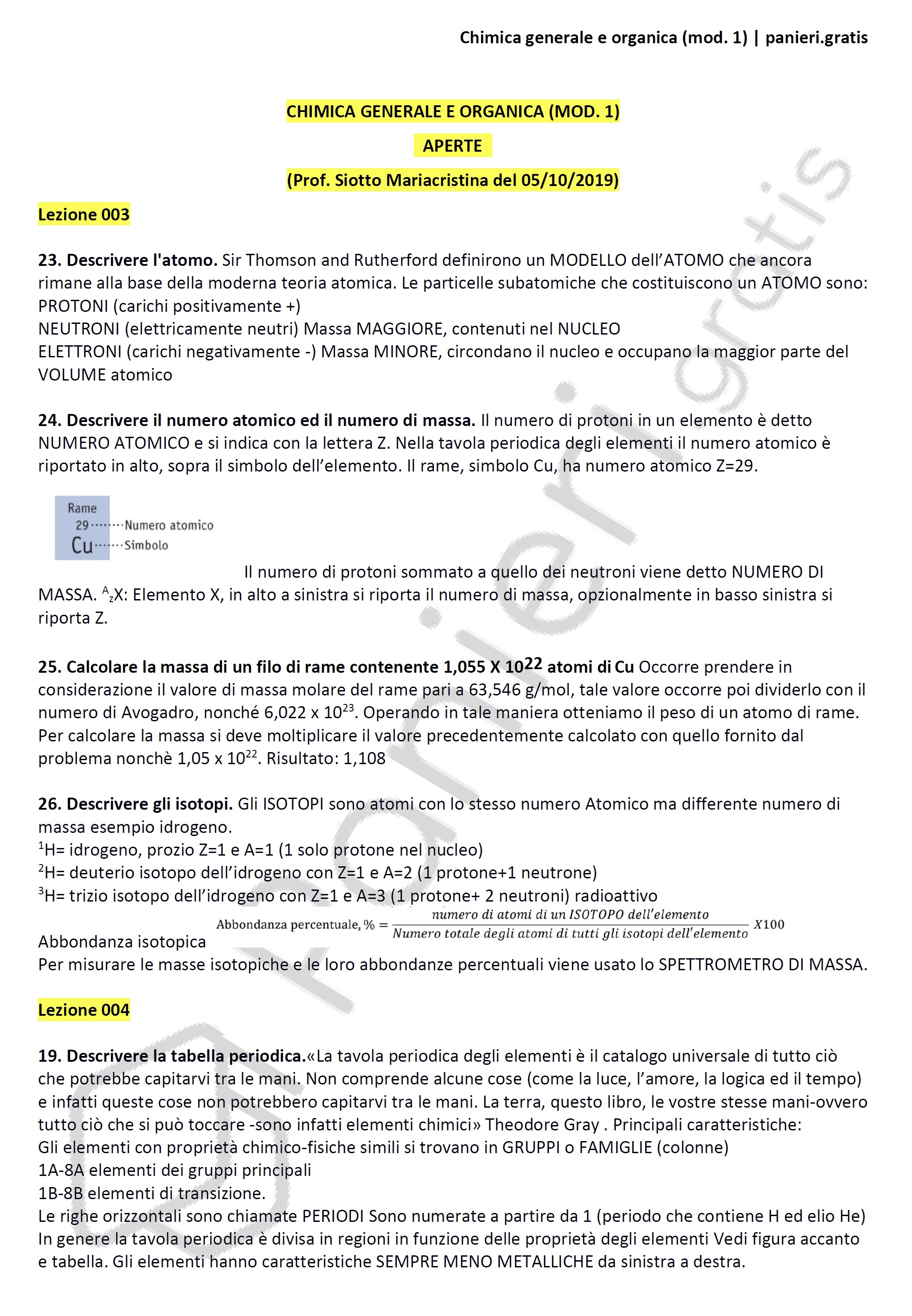 Paniere di Chimica generale e organica (mod. 1) - APERTE - in ordine di lezione per il CdS in SCIENZE BIOLOGICHE, Prof. Siotto Mariacristina del 05/10/2019Informazioni Aggiuntive