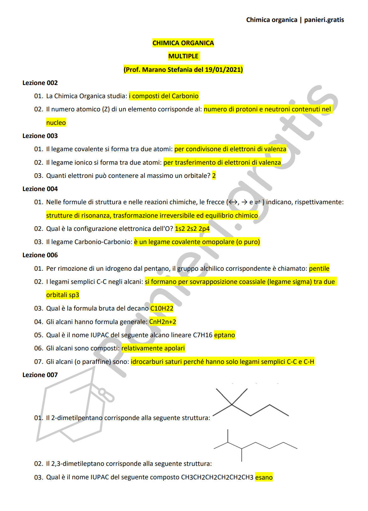 Paniere di Chimica organica - MULTIPLE - In ordine di lezione per il corso di laurea in Ingegneria industriale, Prof. Marano Stefania del 19/01/2021Informazioni Aggiuntive