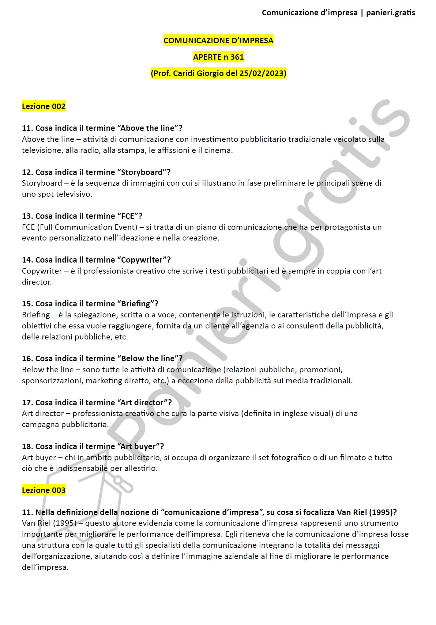 Paniere di Comunicazione d'impresa - APERTE - in ordine di lezione per il CdS in Economia, Prof. Caridi Giorgio del 25/02/2023 - eCampusInformazioni Aggiuntive
