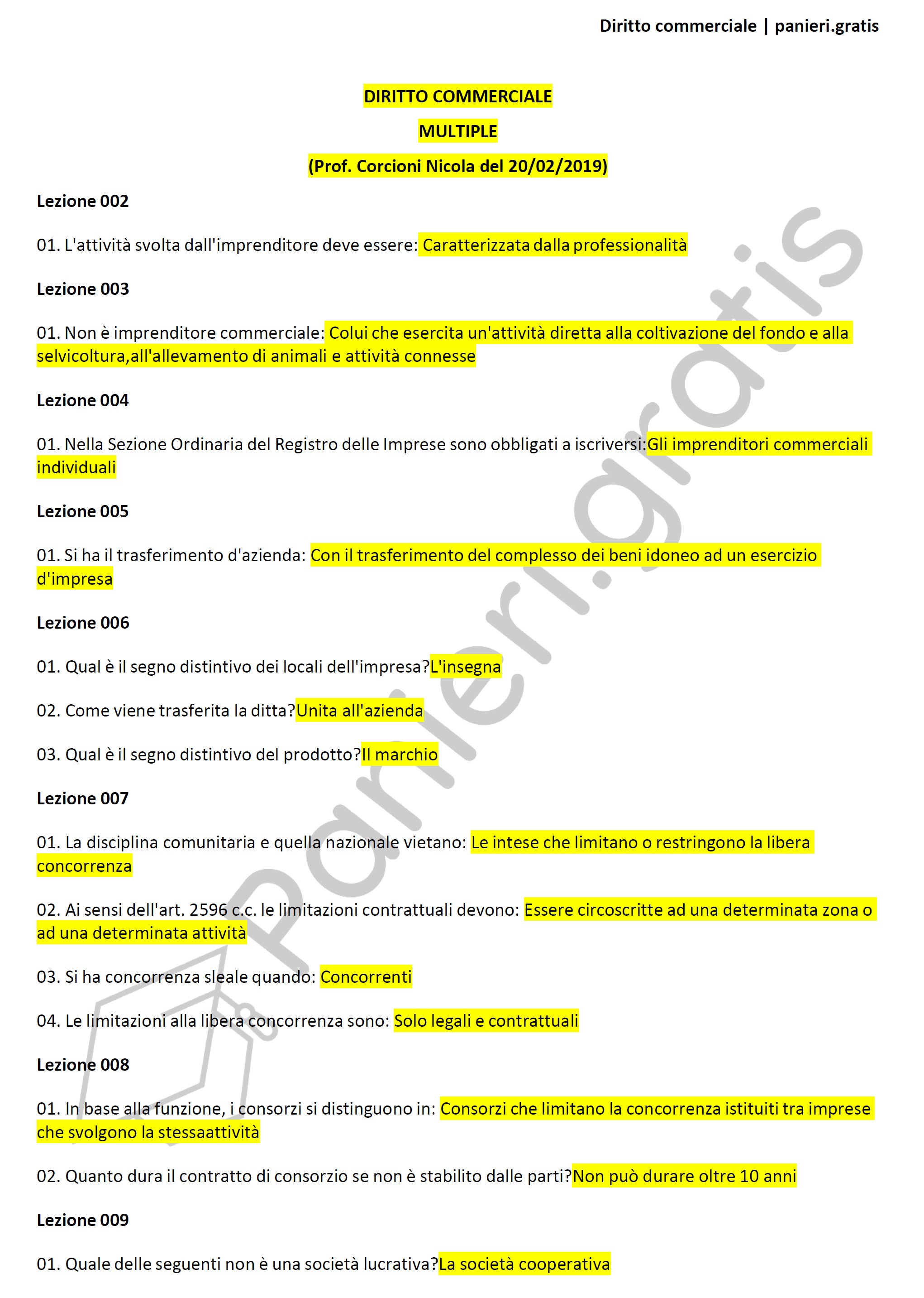 Paniere di Diritto commerciale - MULTIPLE - in ordine di lezione per il MASTER: L'insegnamento delle materie giuridico-economiche negli istituti secondari di II grado metodologie didattiche, Prof. Corcioni Nicola del 20/02/2019Università telematica eCampus