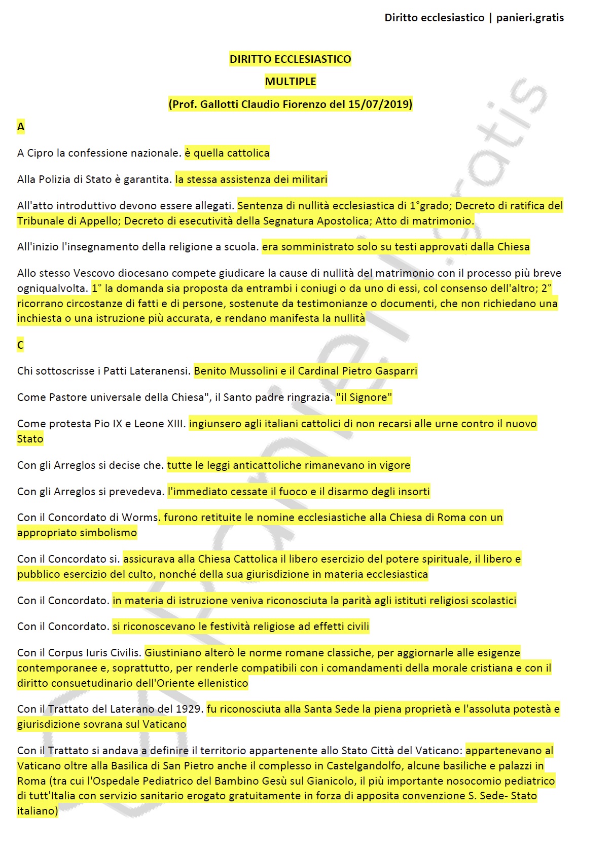 Paniere di Diritto ecclesiastico - MULTIPLE - in ordine alfabetico per il CdS in GIURISPRUDENZA, Prof. Gallotti Claudio Fiorenzo del 15/07/2019Informazioni Aggiuntive