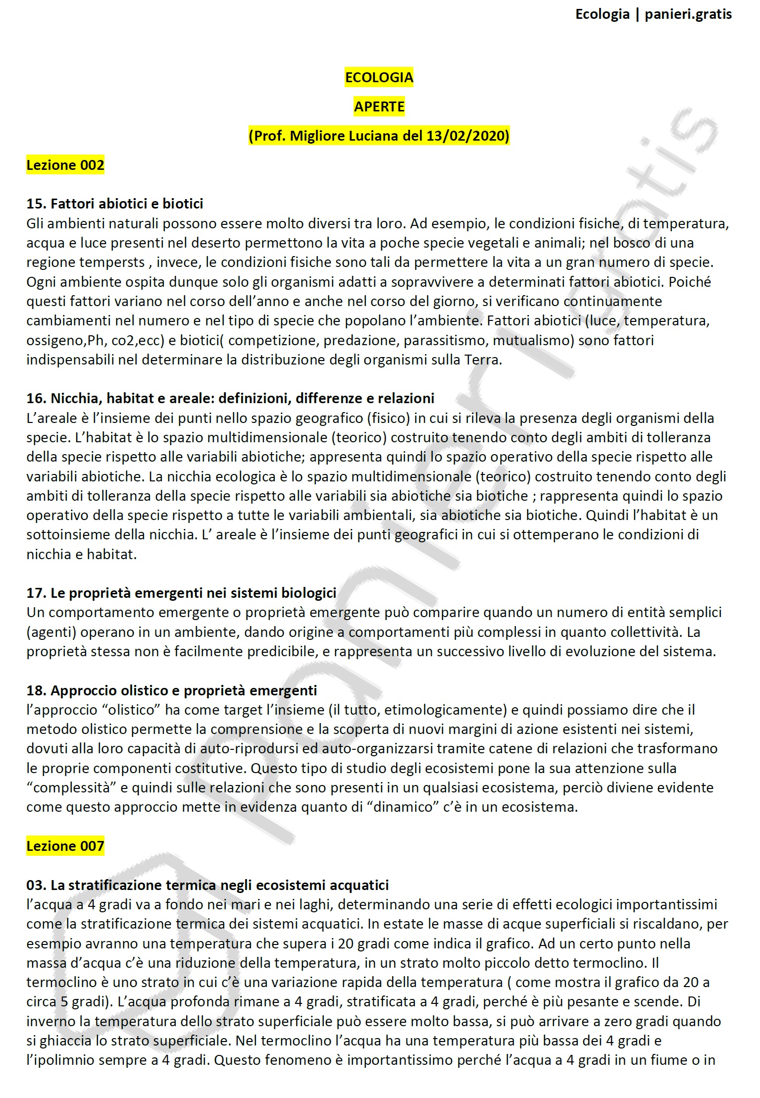Paniere di Ecologia - APERTE - in ordine di lezione per il CdS in Scienze biologiche, Prof. Migliore Luciana del 13/02/2020Informazioni Aggiuntive