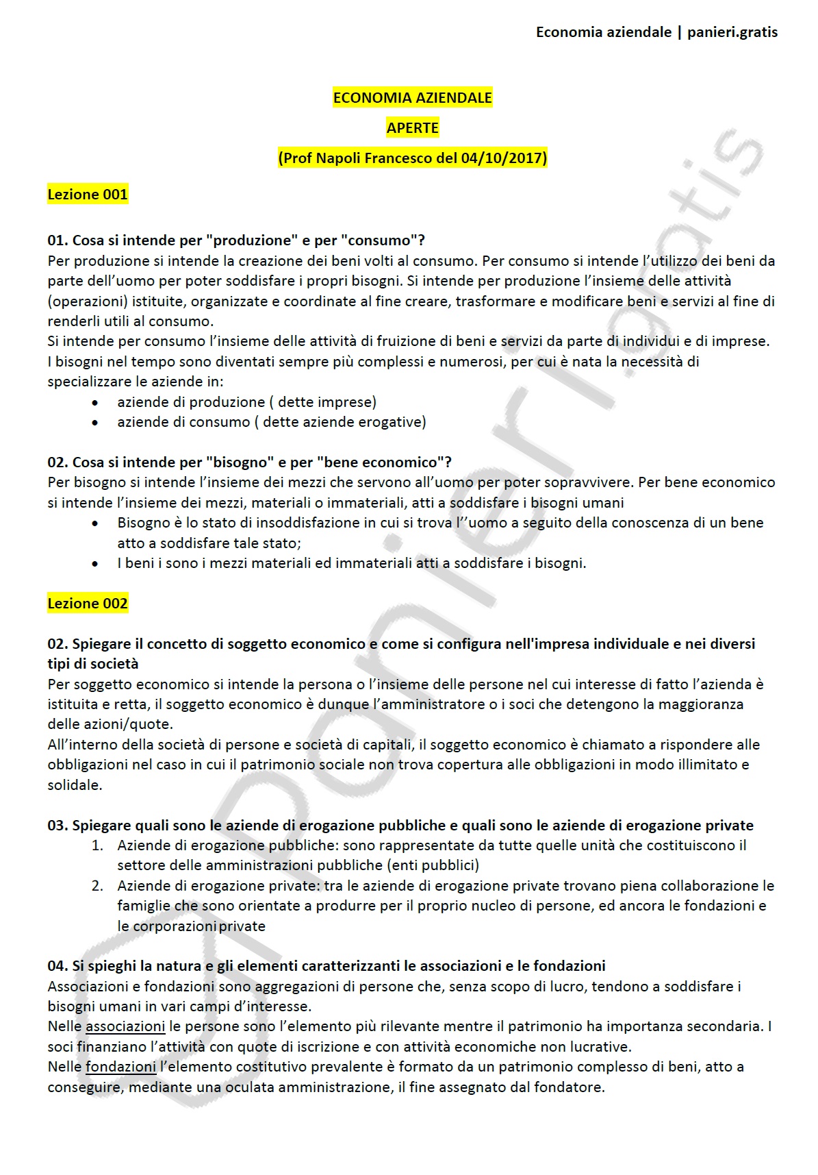 Paniere di economia aziendale - APERTE - in ordine alfabetico per il CdS in ECONOMIA, Prof. Napoli Francesco del 04/10/2017Informazioni Aggiuntive