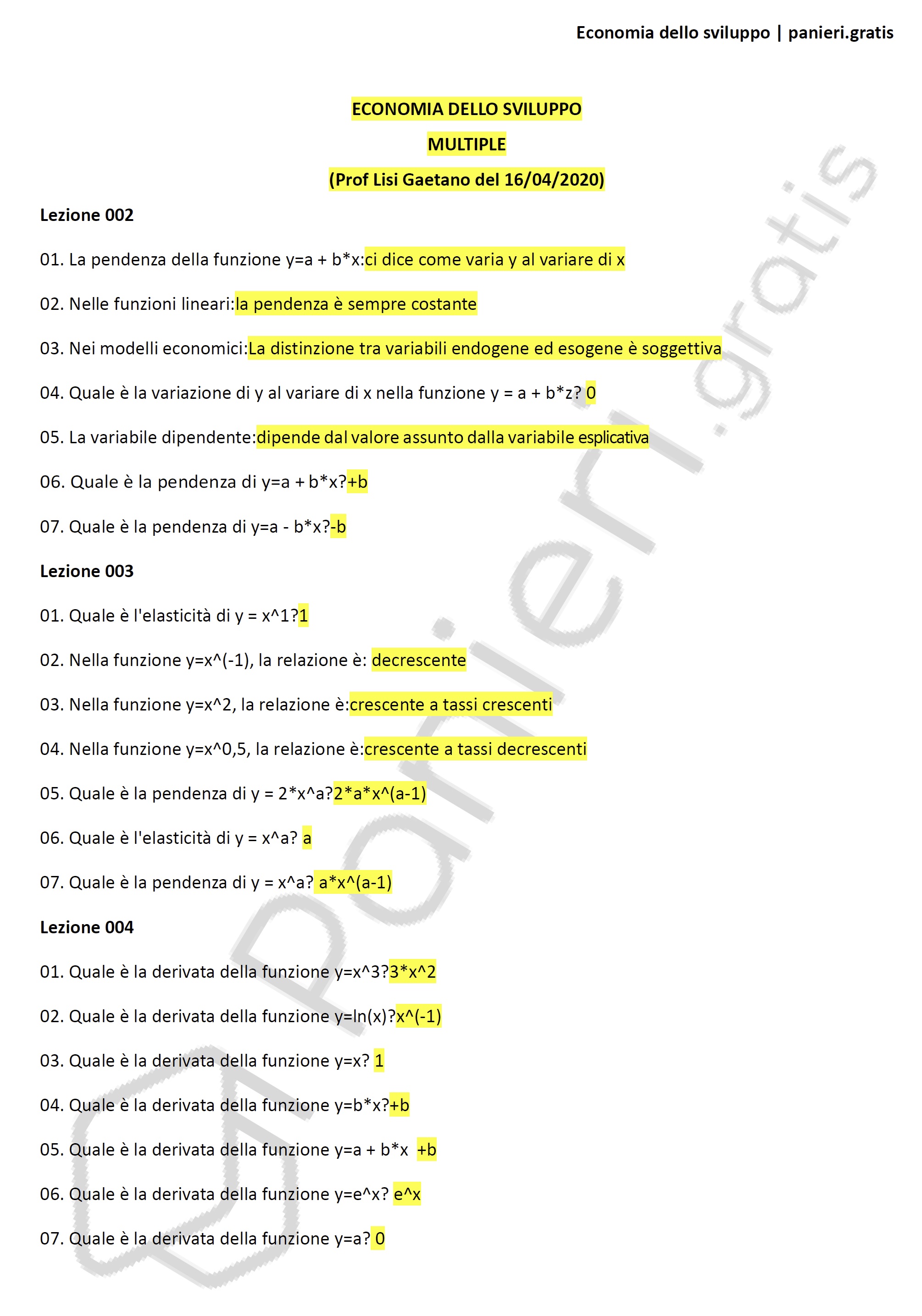 Paniere di Economia dello sviluppo - MULTIPLE - in ordine di lezione per il CdS in Scienze dell'economia, Prof Lisi Gaetano del 16/04/2020Informazioni Aggiuntive