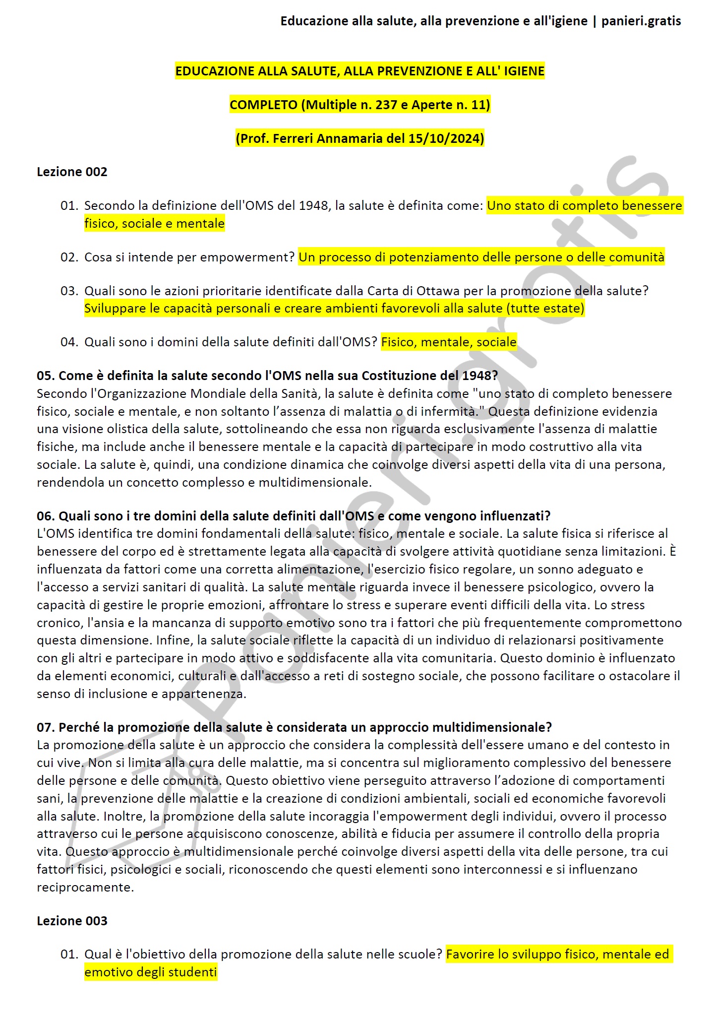 Paniere di Educazione alla salute, alla prevenzione e all'igiene - Completo (Aperte e Multiple), in ordine di lezione per il CdS in Scienze dell'educazione e della formazione, Prof. Ferreri Annamaria del 15/10/2024 - eCampusInformazioni Aggiuntive