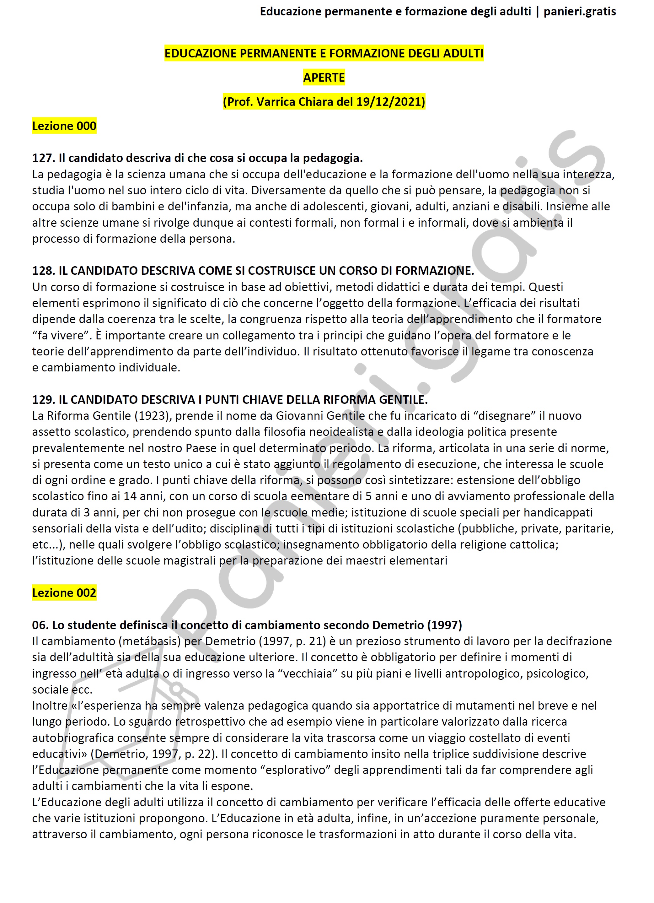 Paniere di Educazione permanente e formazione degli adulti - APERTE - in ordine di lezione per il CdS in Psicologia, Prof. Varrica Chiara del 19/12/2021Informazioni Aggiuntive