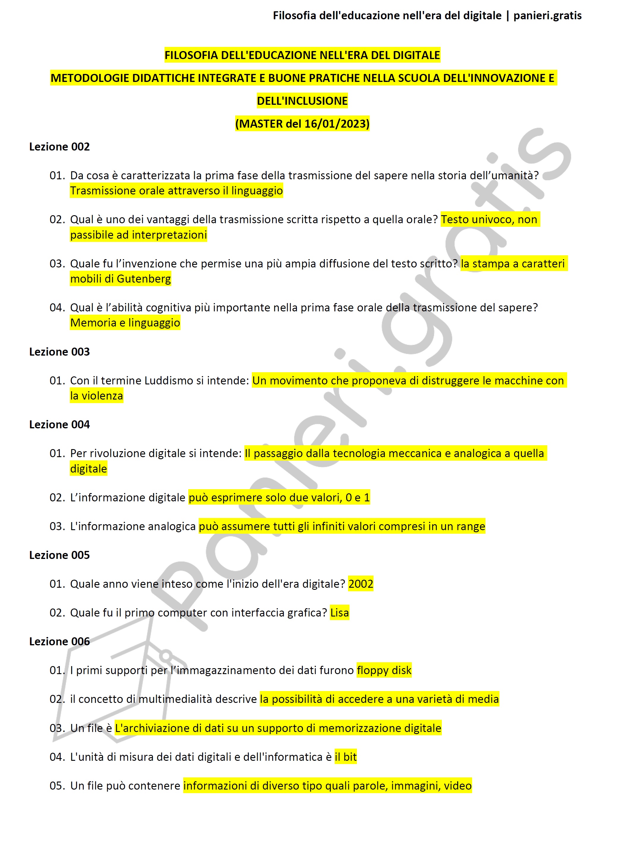Paniere di Filosofia dell'educazione nell'era del digitale - in ordine di lezione per il Master METODOLOGIE DIDATTICHE INTEGRATE E BUONE PRATICHE NELLA SCUOLA DELL'INNOVAZIONE E DELL'INCLUSIONE del 16/01/2023Informazioni Aggiuntive