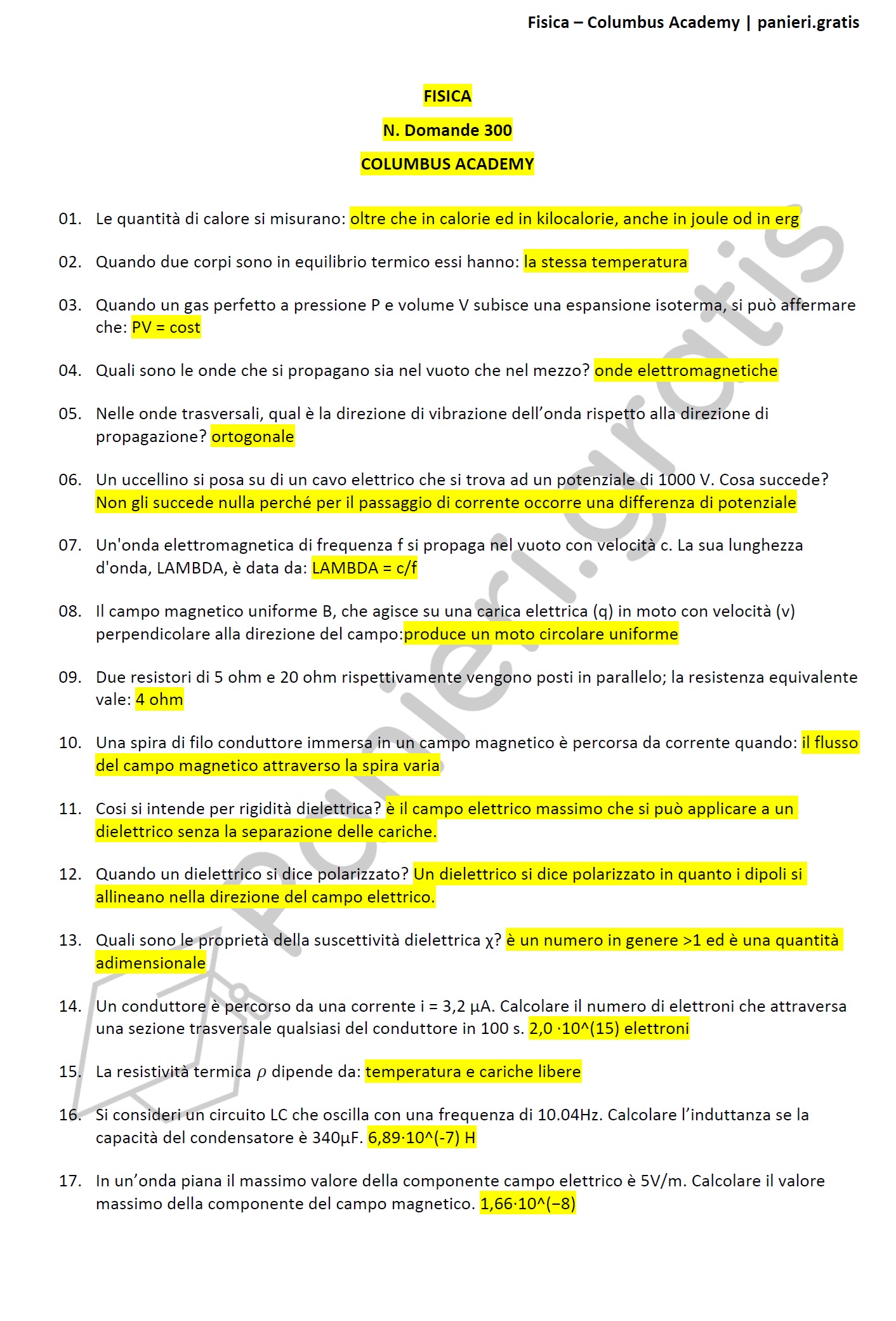 Paniere di Fisica con tutte le 300 domande per i corsi Columbus AcademyInformazioni Aggiuntive